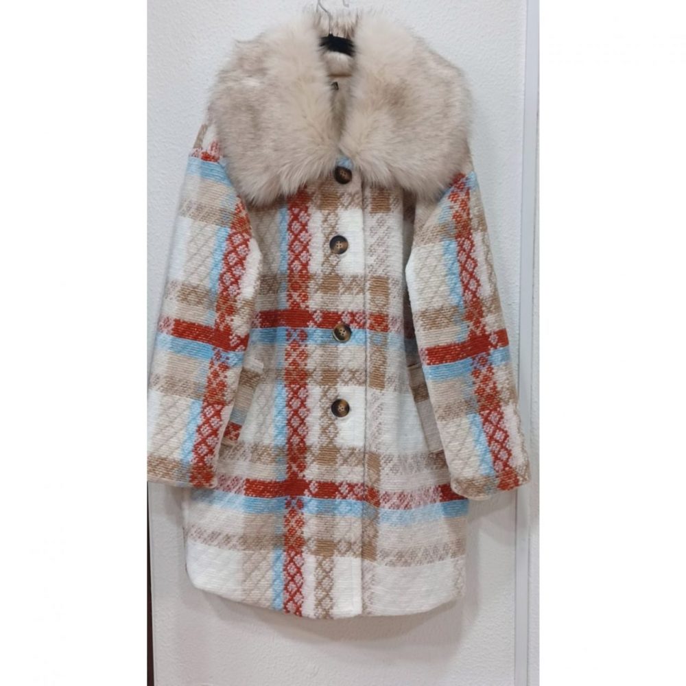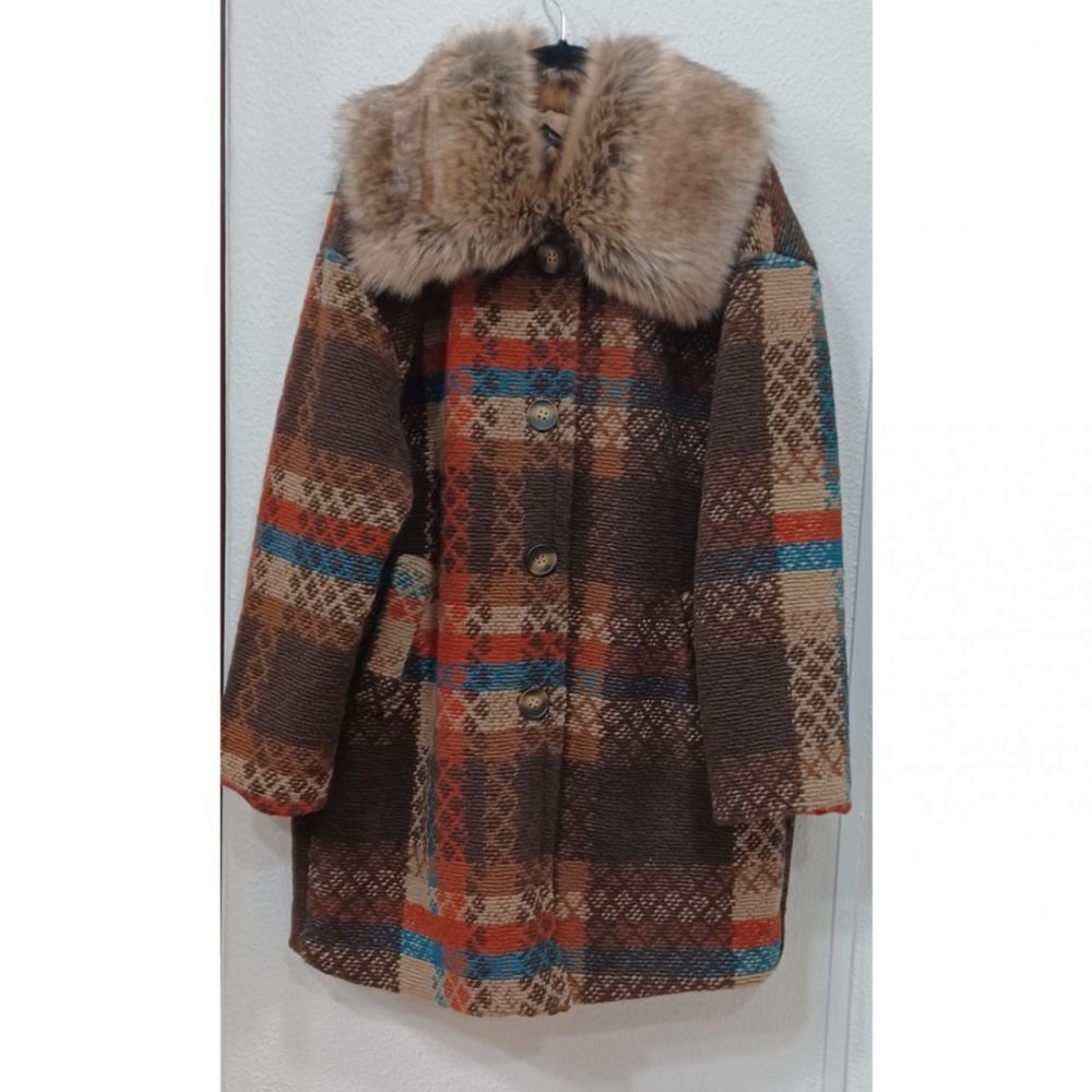 Abrigo lana con cuello de pelito, talla única, forro por dentro, medidas: 120 cm contorno pecho y cadera y largo 85 cm
