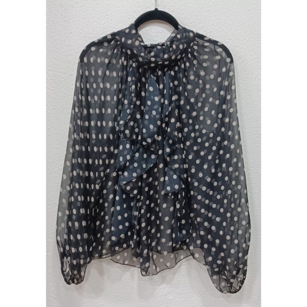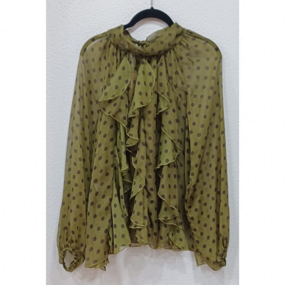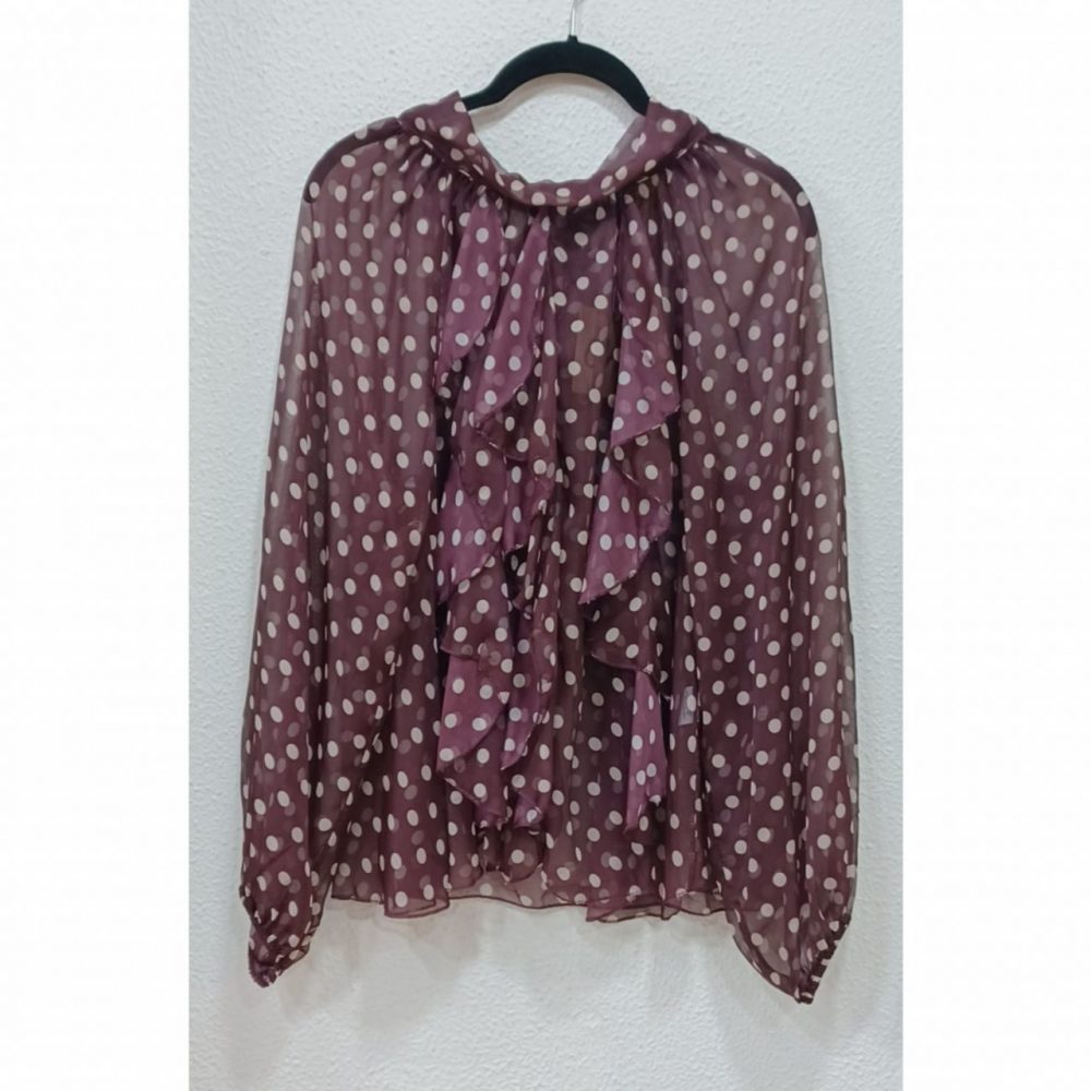 Blusa chorreras en tejido semitransparente y asedado, talla única, medidas: contorno 110 cm y largo 64 cm