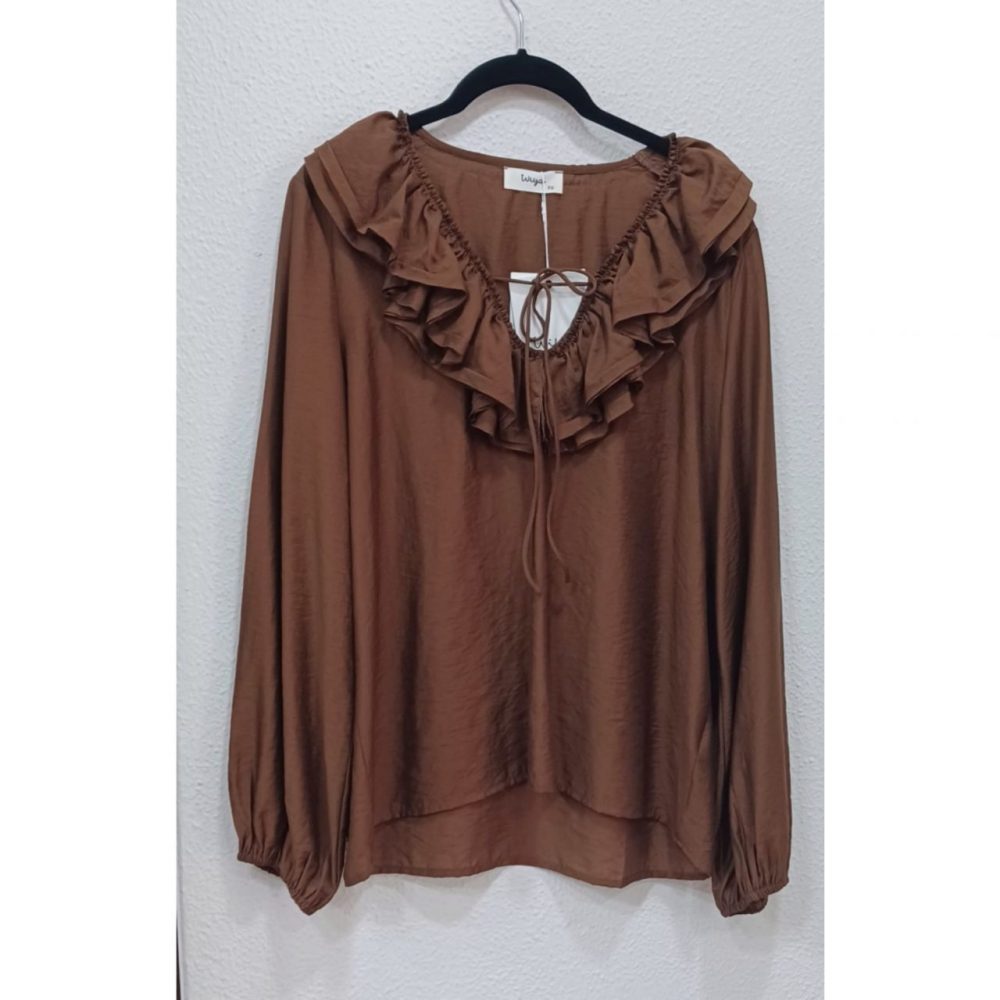 Blusa romántica, talla única, medidas: 105 cm contorno de pecho, 110 cm contorno de cadera, 62×65 cm largo y 40 cm contorno de brazo, goma en puño, composición: 57% tencel, 23% viscosa y 20% poliamida