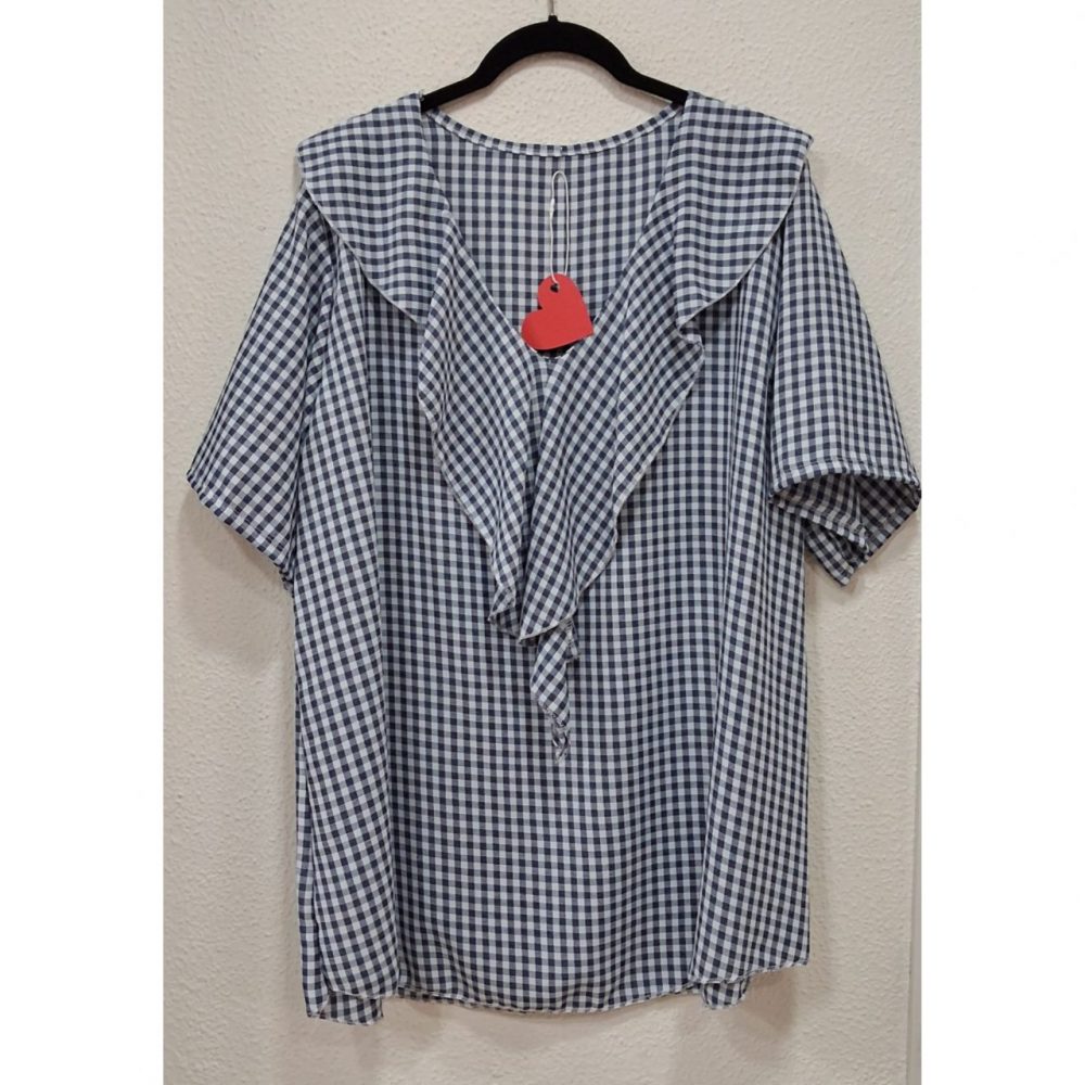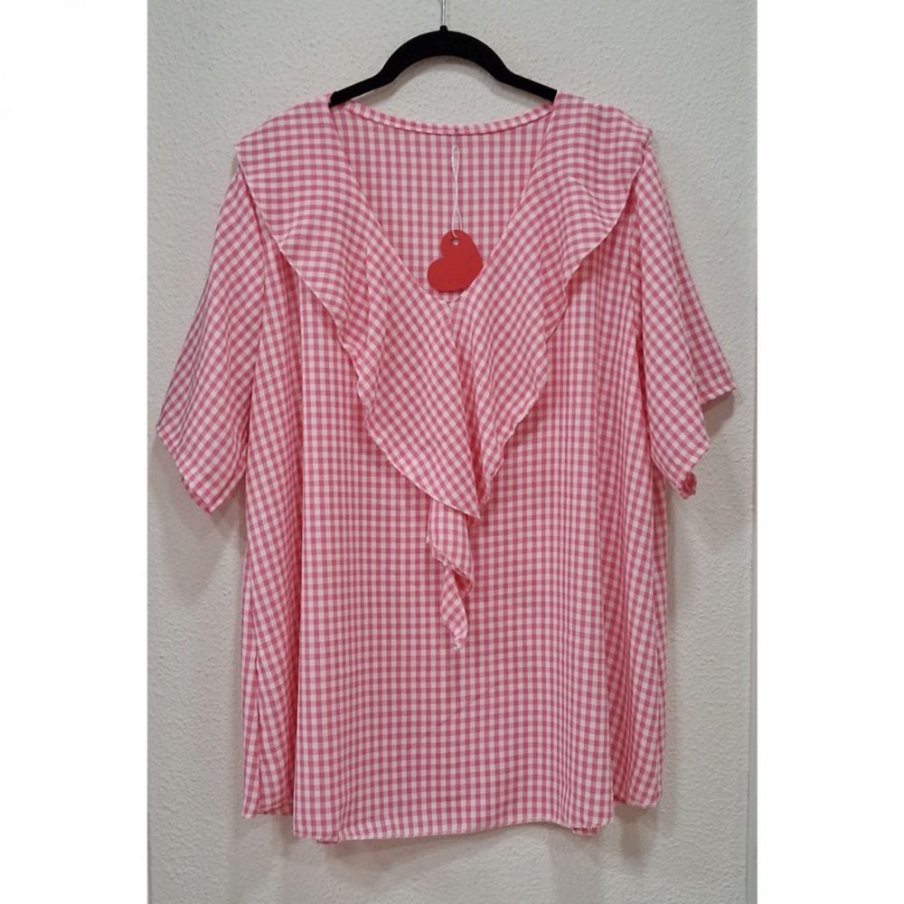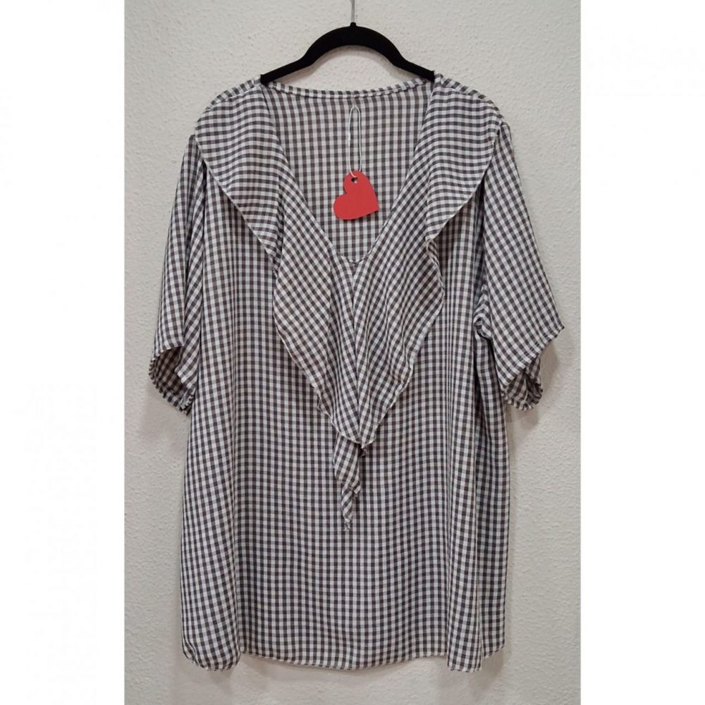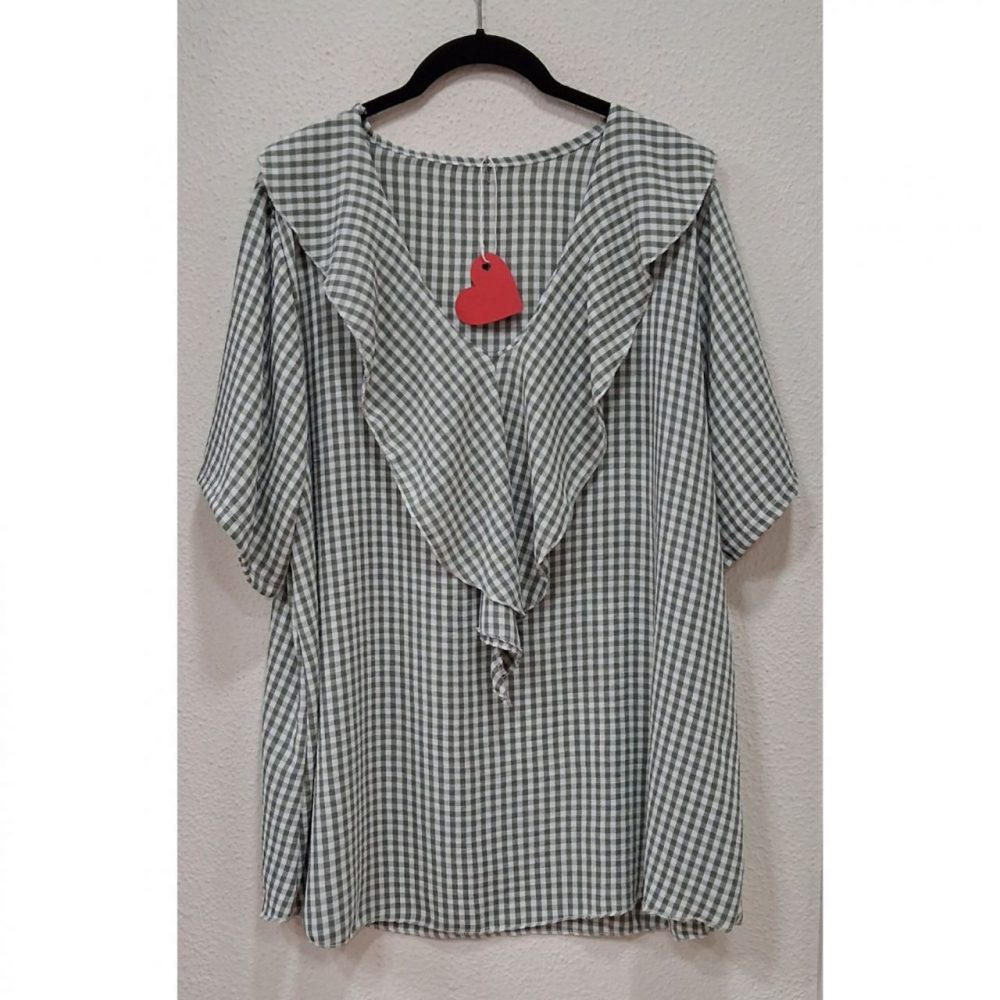 Blusa vichy volante, corte recto, composición: 50% poliester y 50% viscosa