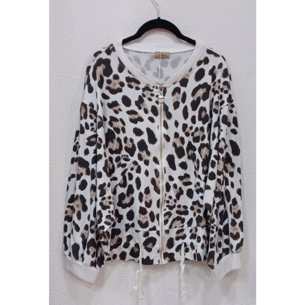 Bomber animal print en tela de chándal, 95% algodón y 5% elástico, talla única, medidas: 120 cm contorno de pecho, 110 cm cadera y 63 cm largo