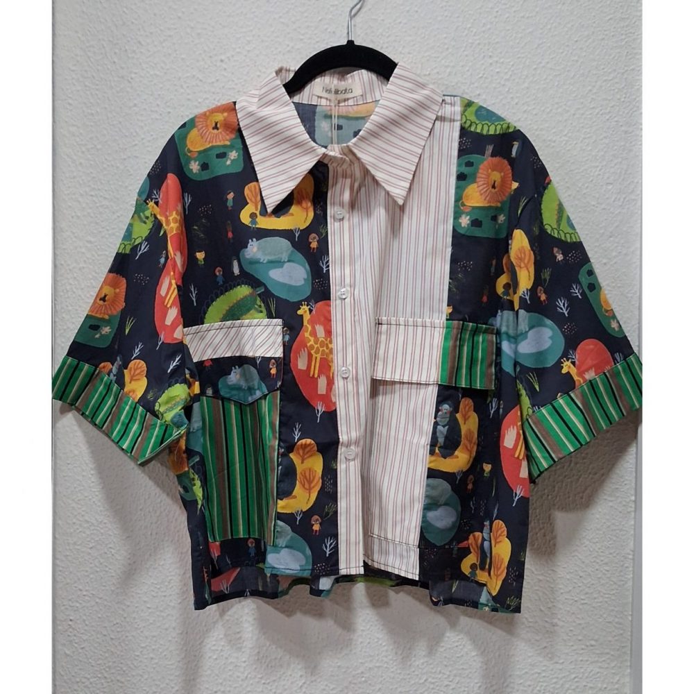 Camisa animalitos, 65% poliester y 35% algodón, ligeramente más larga por detrás