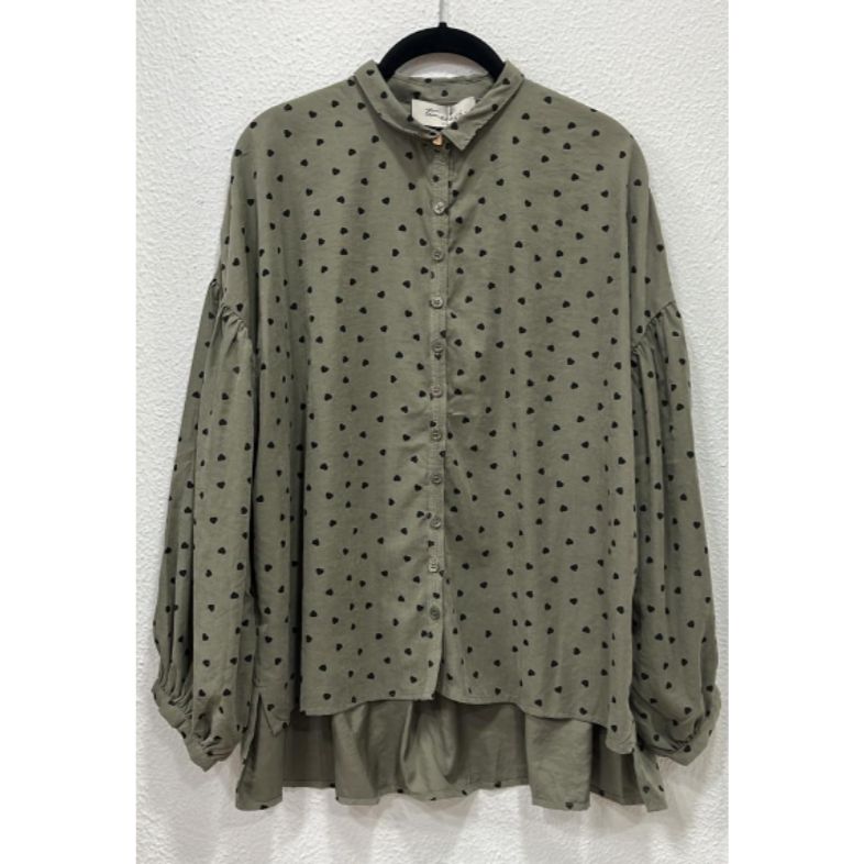 Camisa corazoncitos, talla única, medidas:128 cm contorno de pecho, 140 cm contorno de cadera y 63×72 cm de largo, composición: 90% poliester y 10% poliamida.