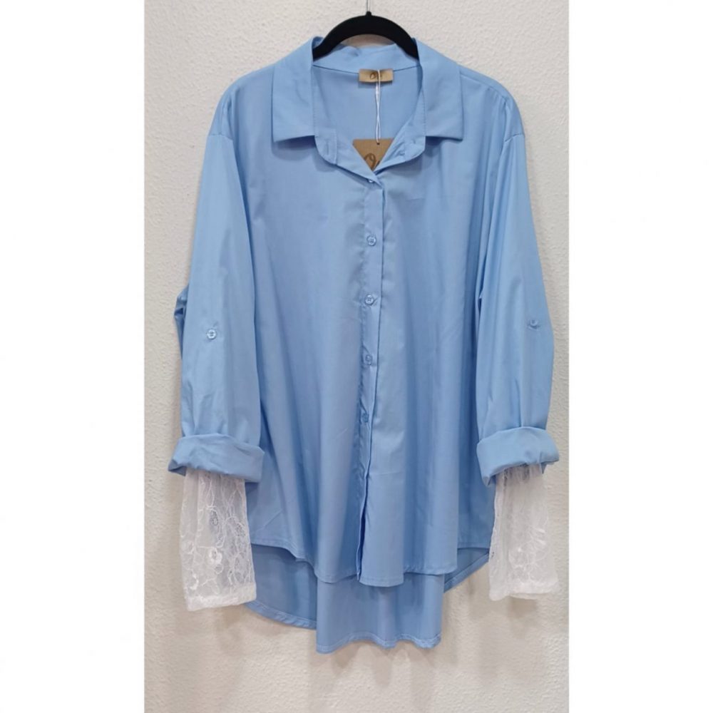 Camisa oversize con mangas de guipur por dentro, talla única, medidas: 130 cm contorno de pecho y cadera, 71×82 cm largo