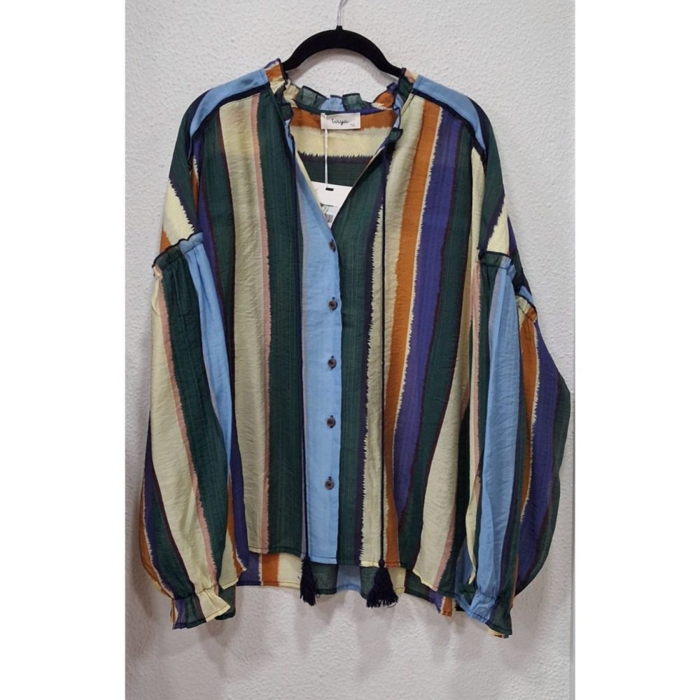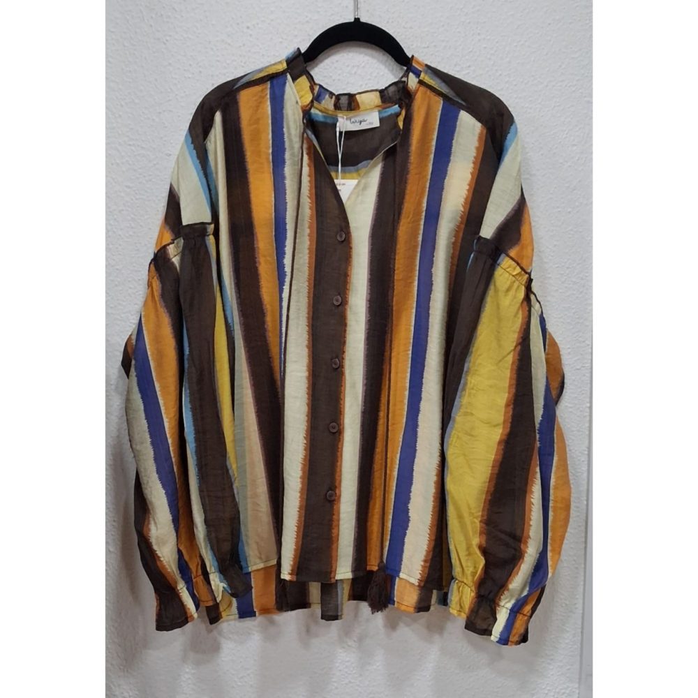 Camisa rayas, 70% viscosa y 30% poliamida, ligeramente más larga por detrás