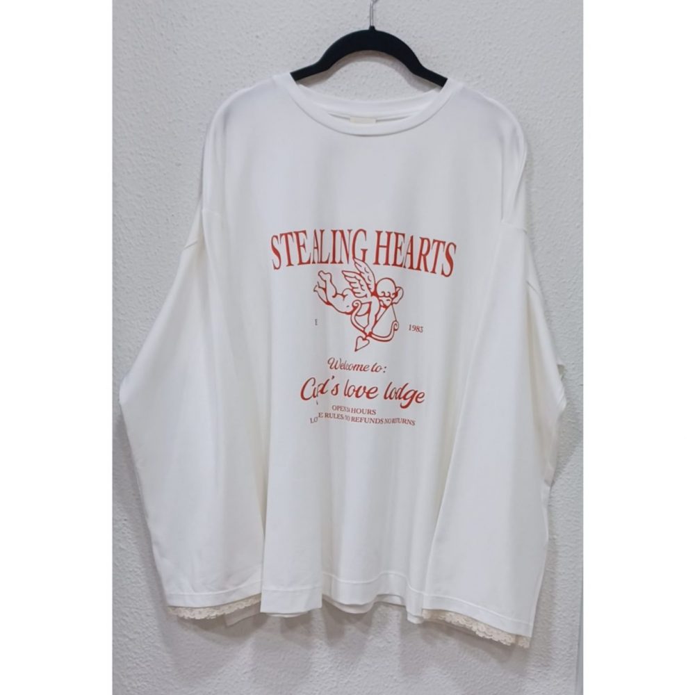 Camiseta cupido con detalle de encaje en los puños, corte cuadrado, 95% algodón y 5% elastano