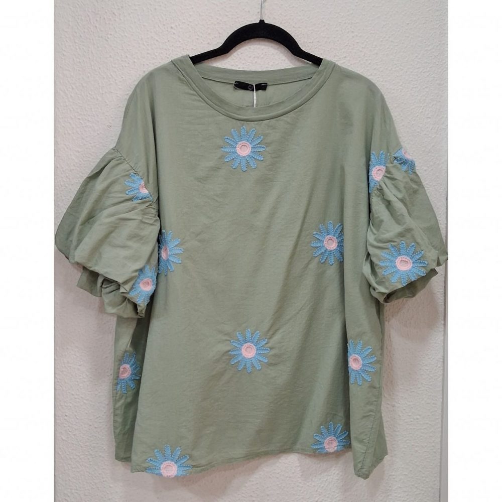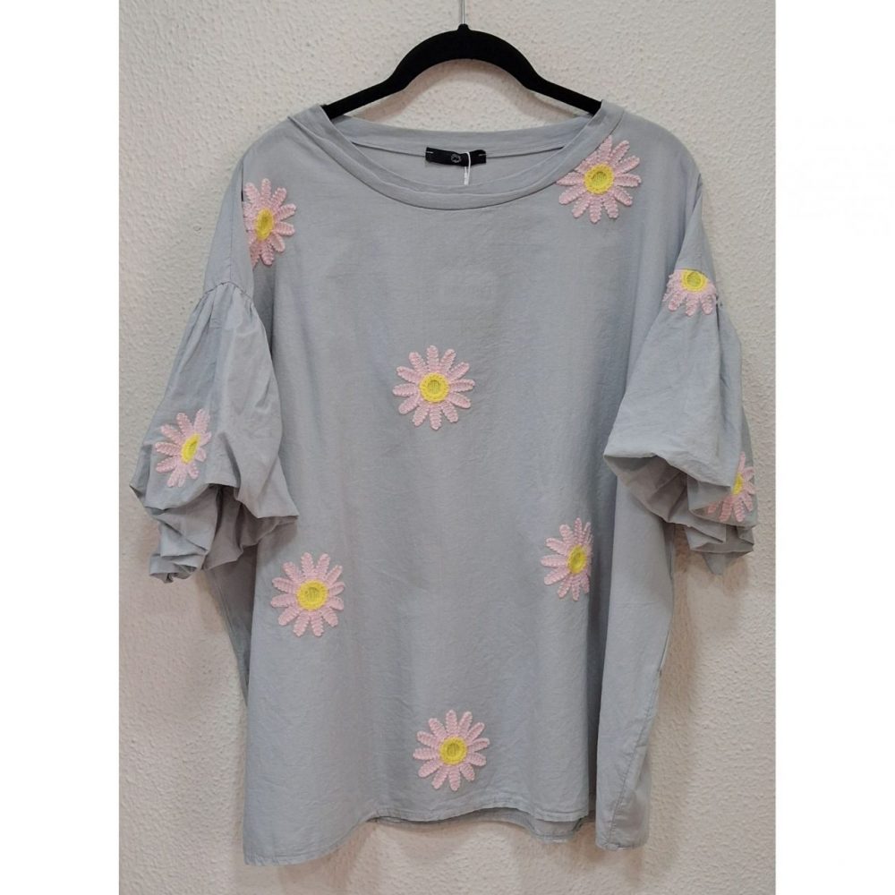 Camiseta flores bordadas