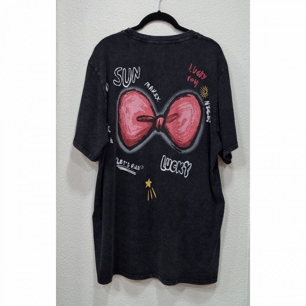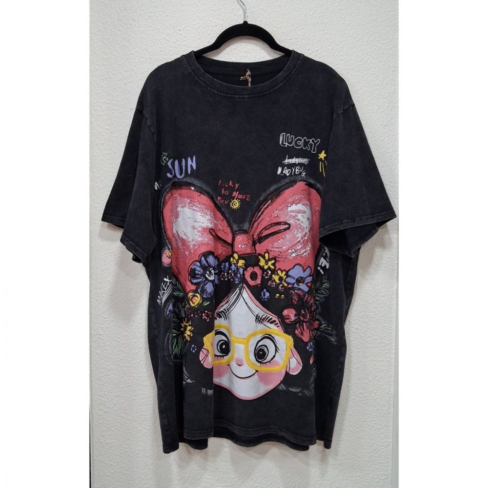 Camiseta muñeca, tiene pequeñas lentejuelas alrededor del dibujo, estampada por delante y por detrás, algodón 100%