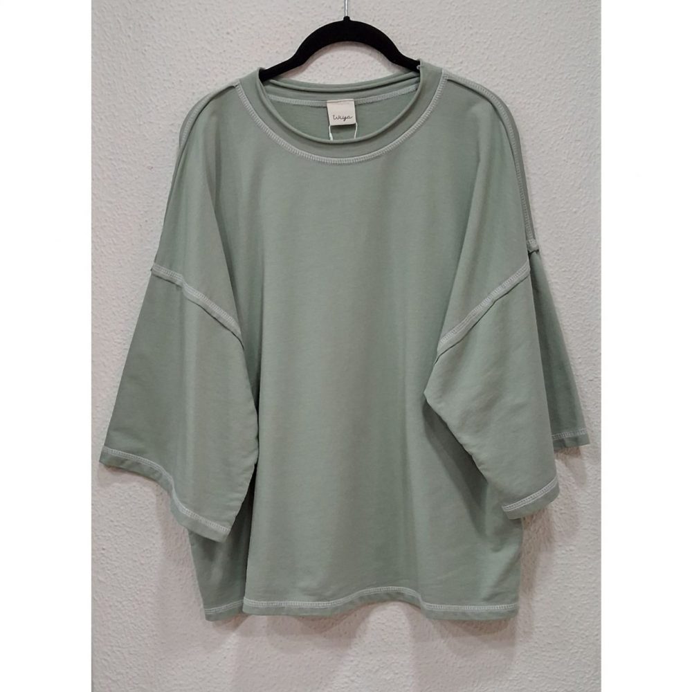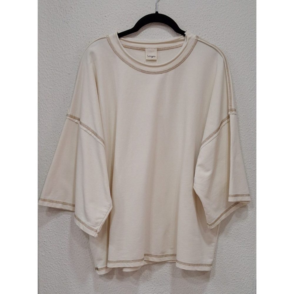 Camiseta oversize, tejido en algodón 95% y 5% elastano, tela gordita tipo sudadera, manga por debajo del codo