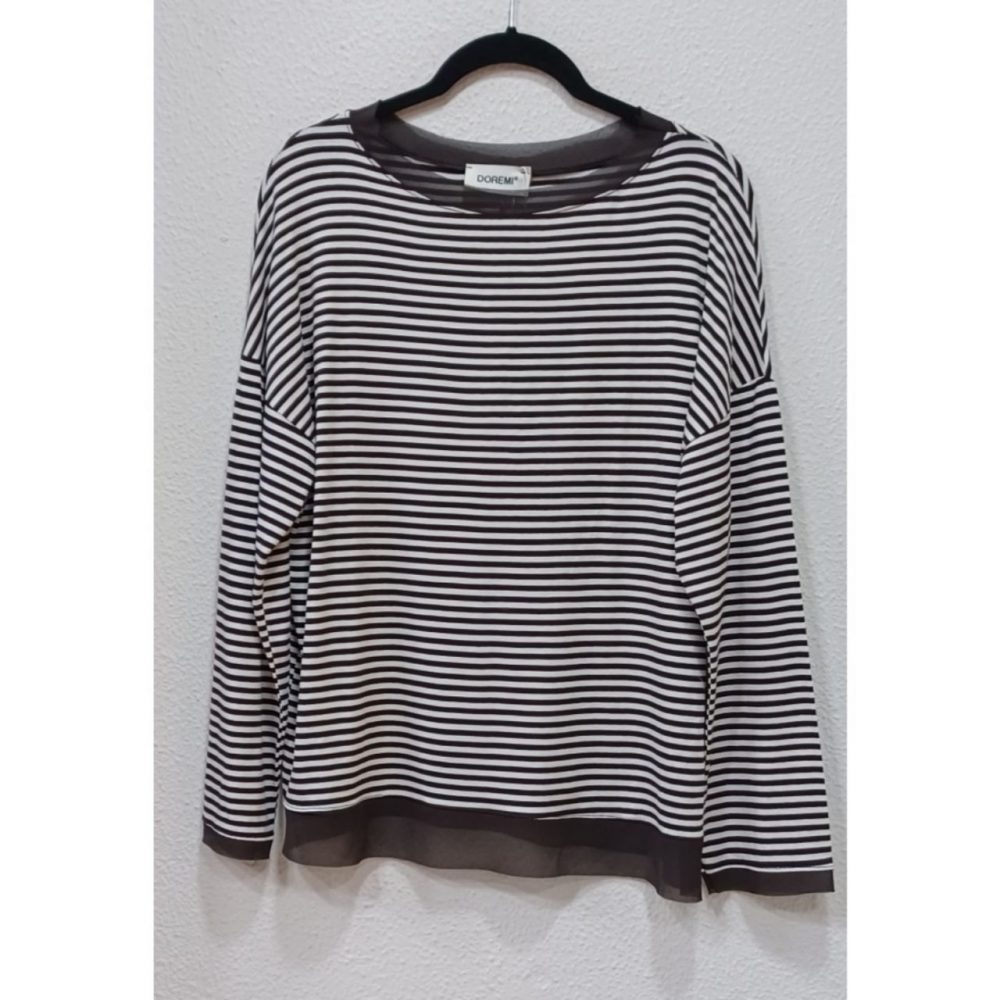 Camiseta rayas con gasa en cuello, puños y bajo, tejido elástico, talla única, medidas: contorno de pecho 110, contorno de cadera 100, largo 62