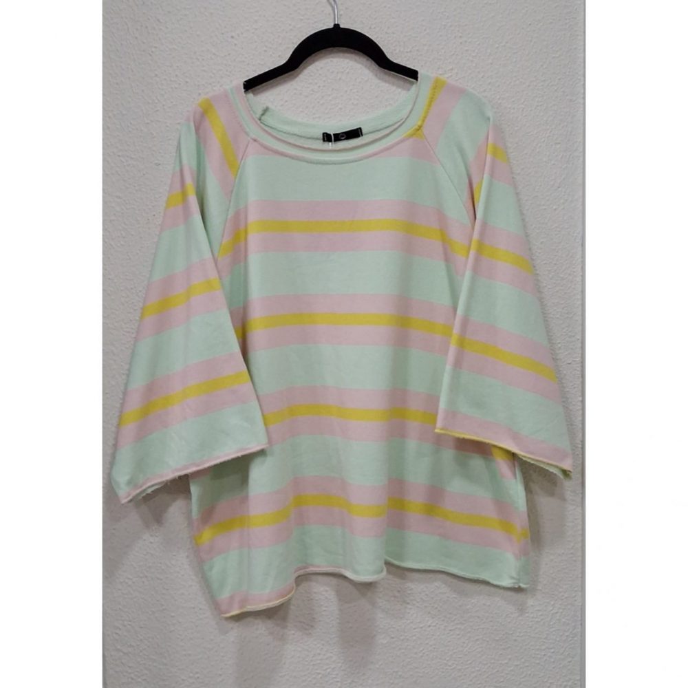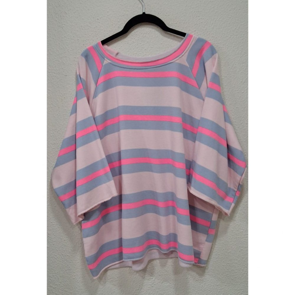 Camiseta rayas, manga ancha por debajo del codo, 70% algodón y 30% poliester