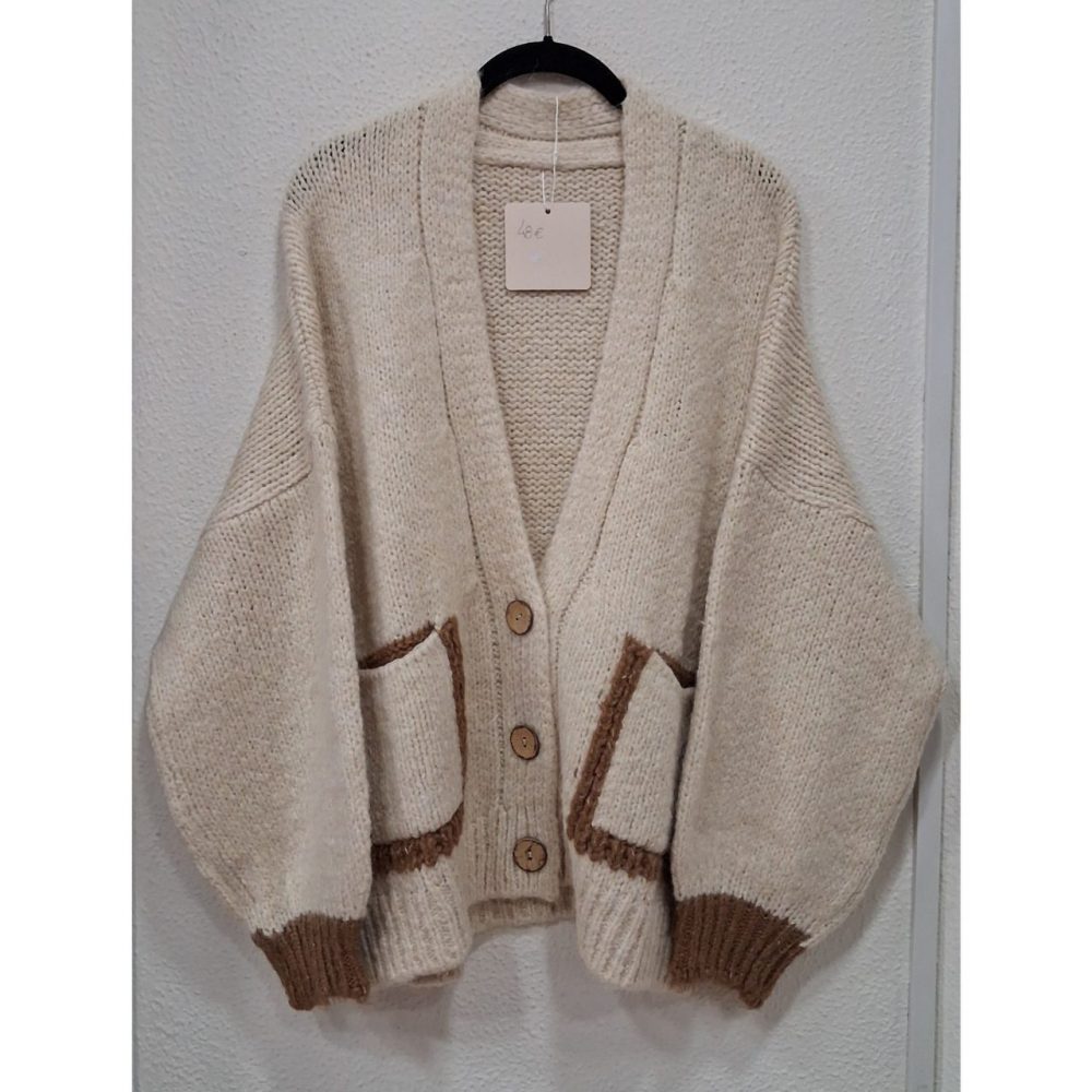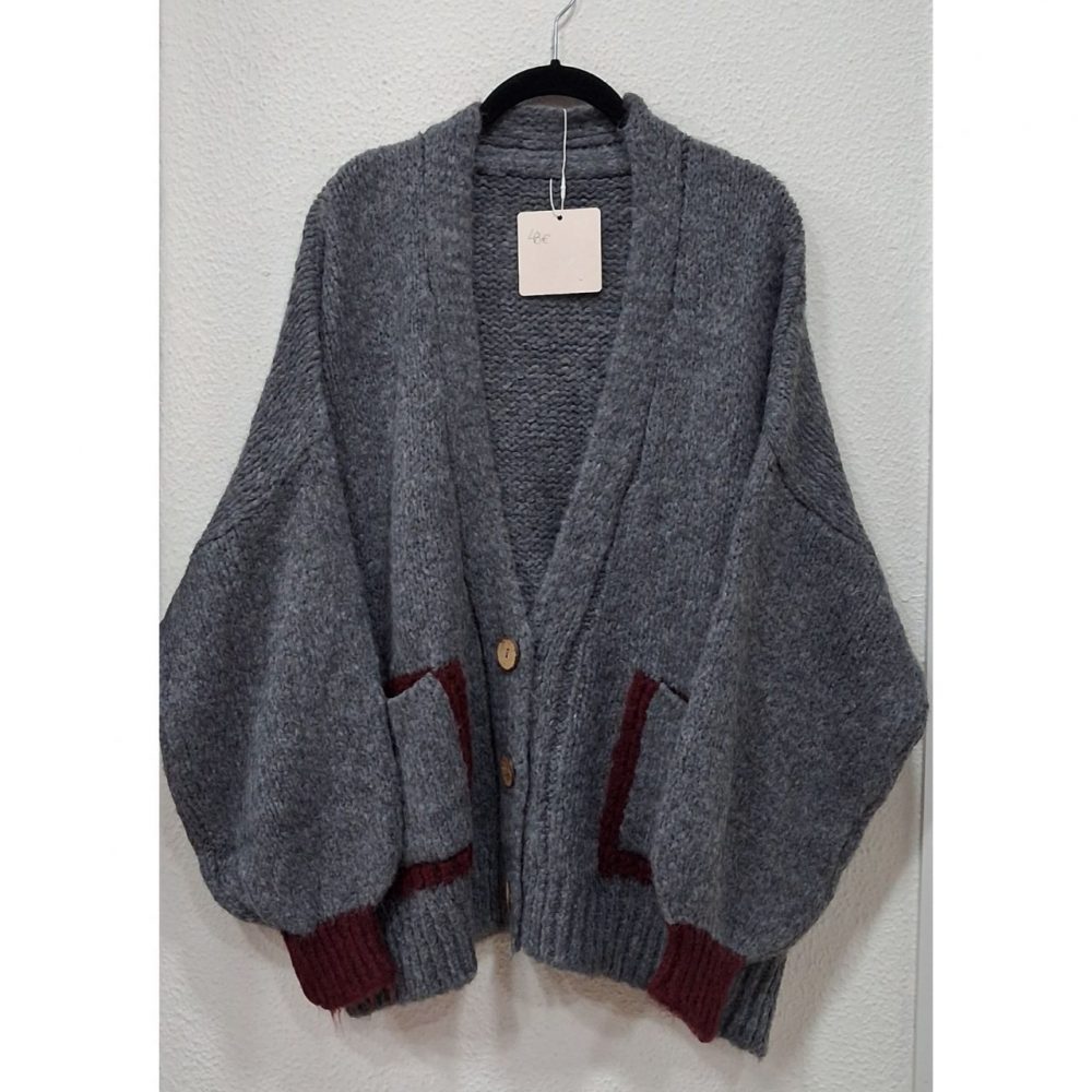 Chaqueta bolsillos plastón, más larga por los lados, composición: 62% acrílico, 18% poliester, 8% lana, 8% viscosa y 4% alpaca