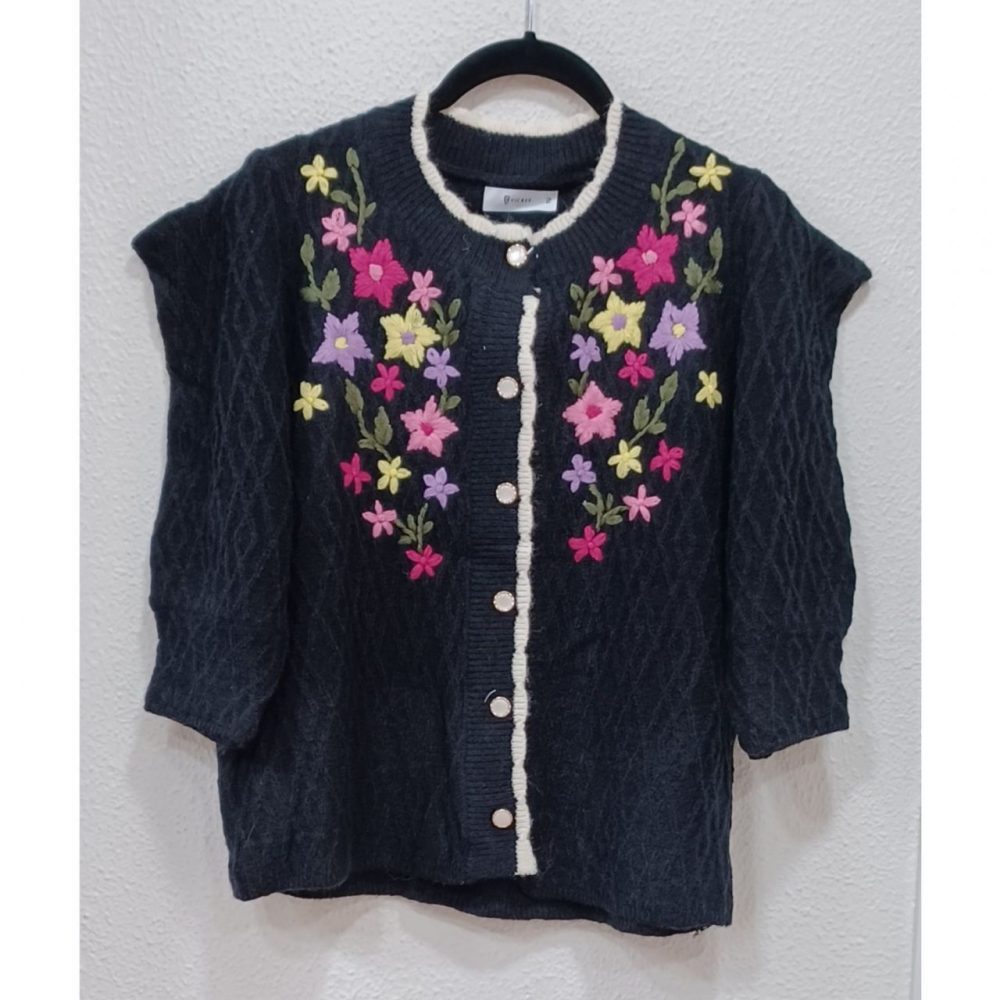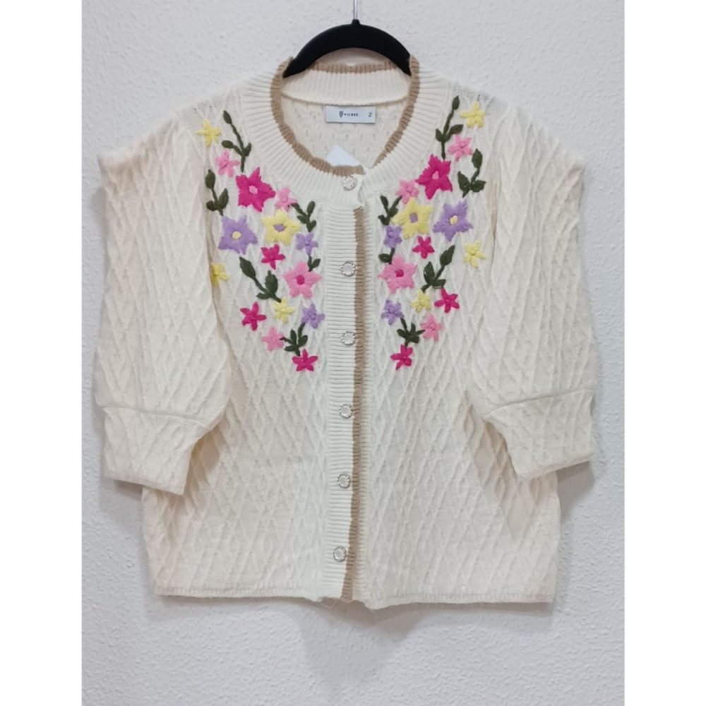 Chaqueta bordada con manga cuadrada, talla única, medidas: 100 pecho y cadera, 55 largo. Composición: 50% acrílico, 25% viscosa, 20% poliamida y 5% elástico