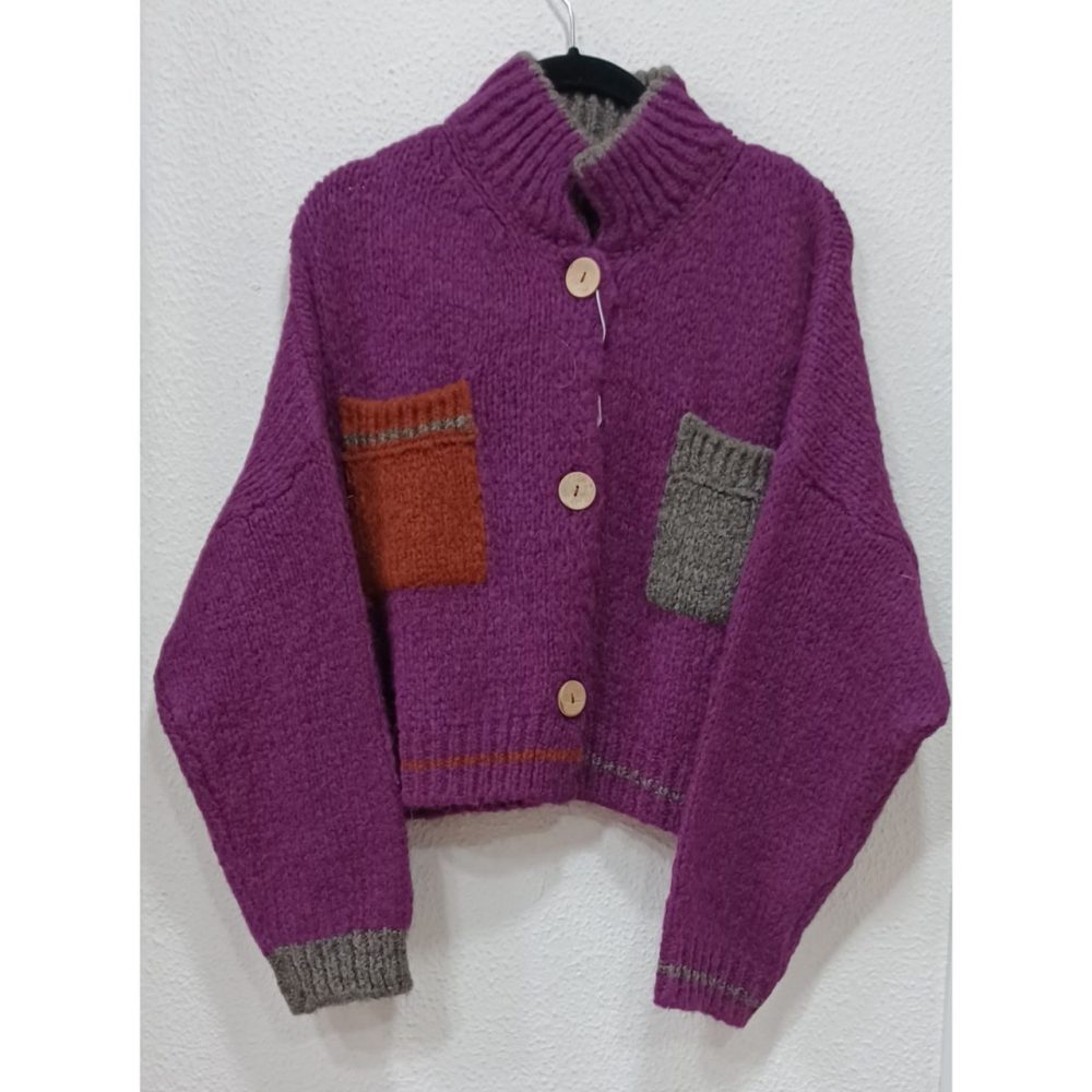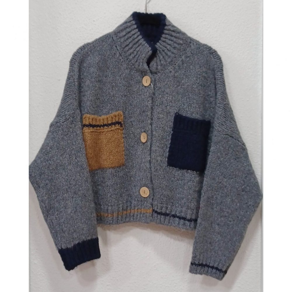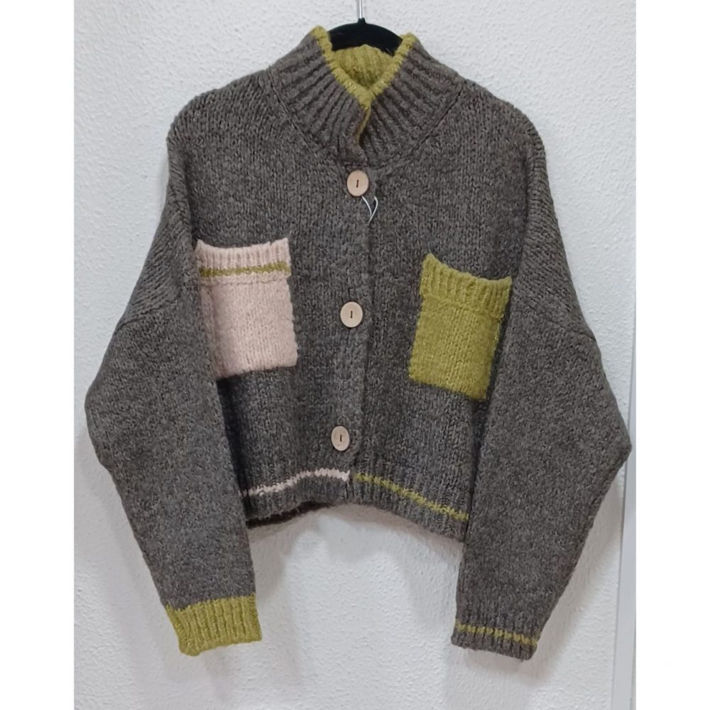 Chaqueta corta, talla única, medidas: 120 cm contorno de pecho y 46 cm largo. 62% poliacrilico, 18% poliester, 8% lana, 8% viscosa y 4% alpaca.