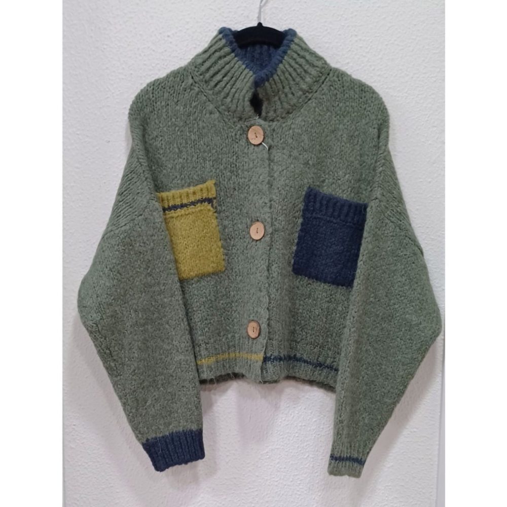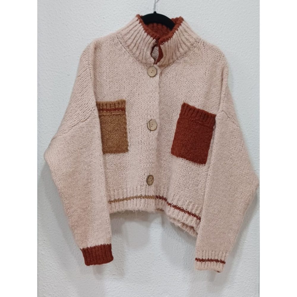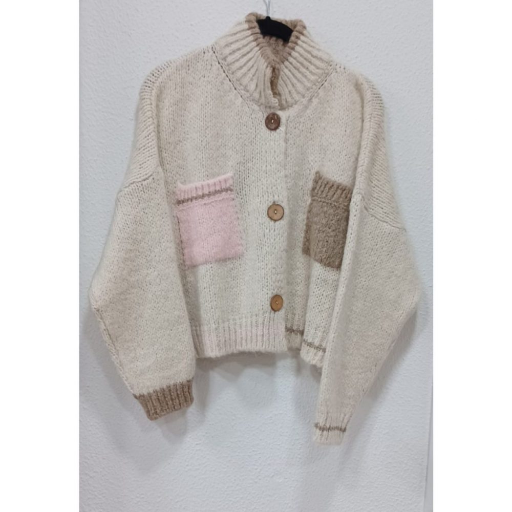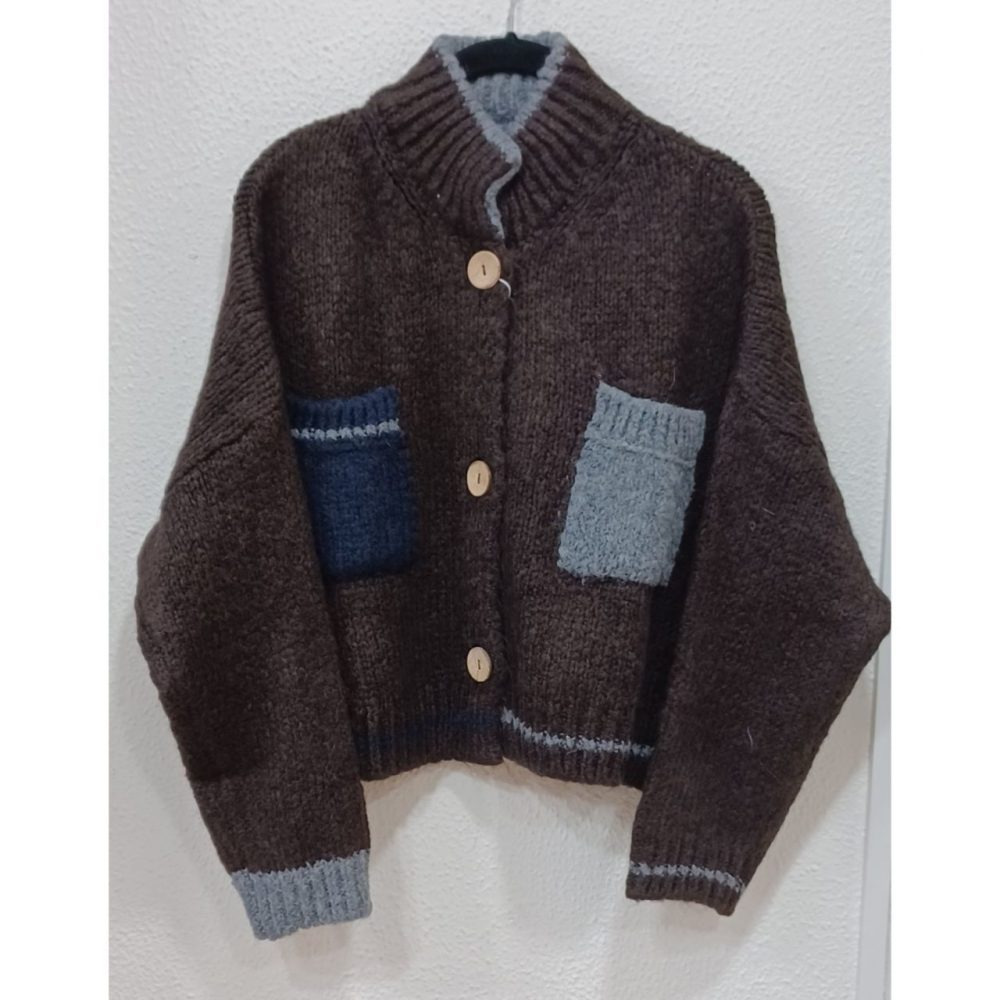 Chaqueta corta, talla única, medidas: 120 cm contorno de pecho y 46 cm largo. 62% poliacrilico, 18% poliester, 8% lana, 8% viscosa y 4% alpaca.