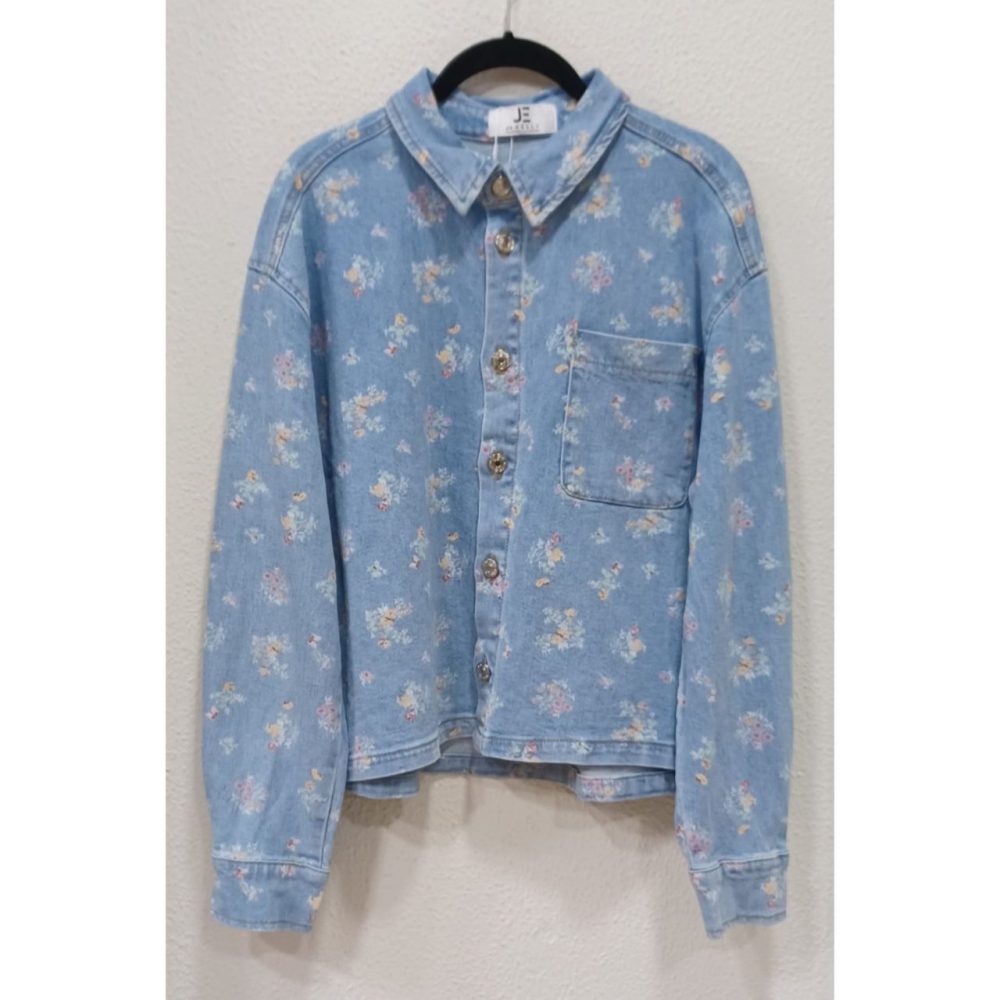 Chaqueta denim florecitas, algodón 99% y elastano 1%