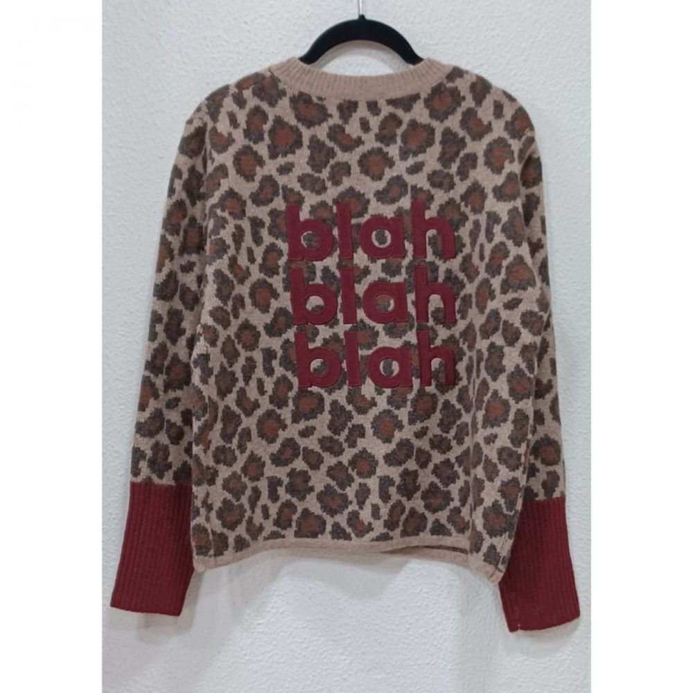 Chaqueta leopardo con letras en la espalda, talla única, medidas: contorno pecho y cadera 100 cm, largo 58 cm. Composición: 40% poliester, 38% lana, 20% poliamida y 2% spandex