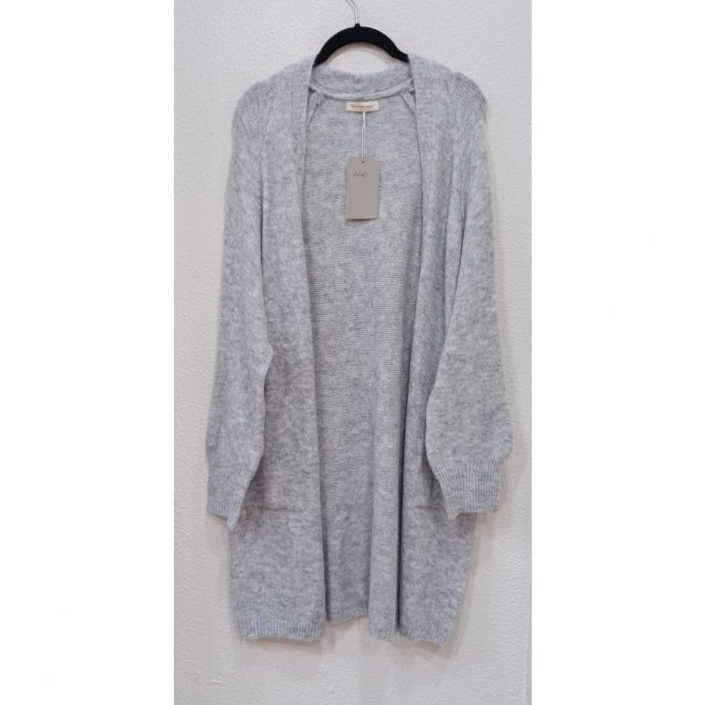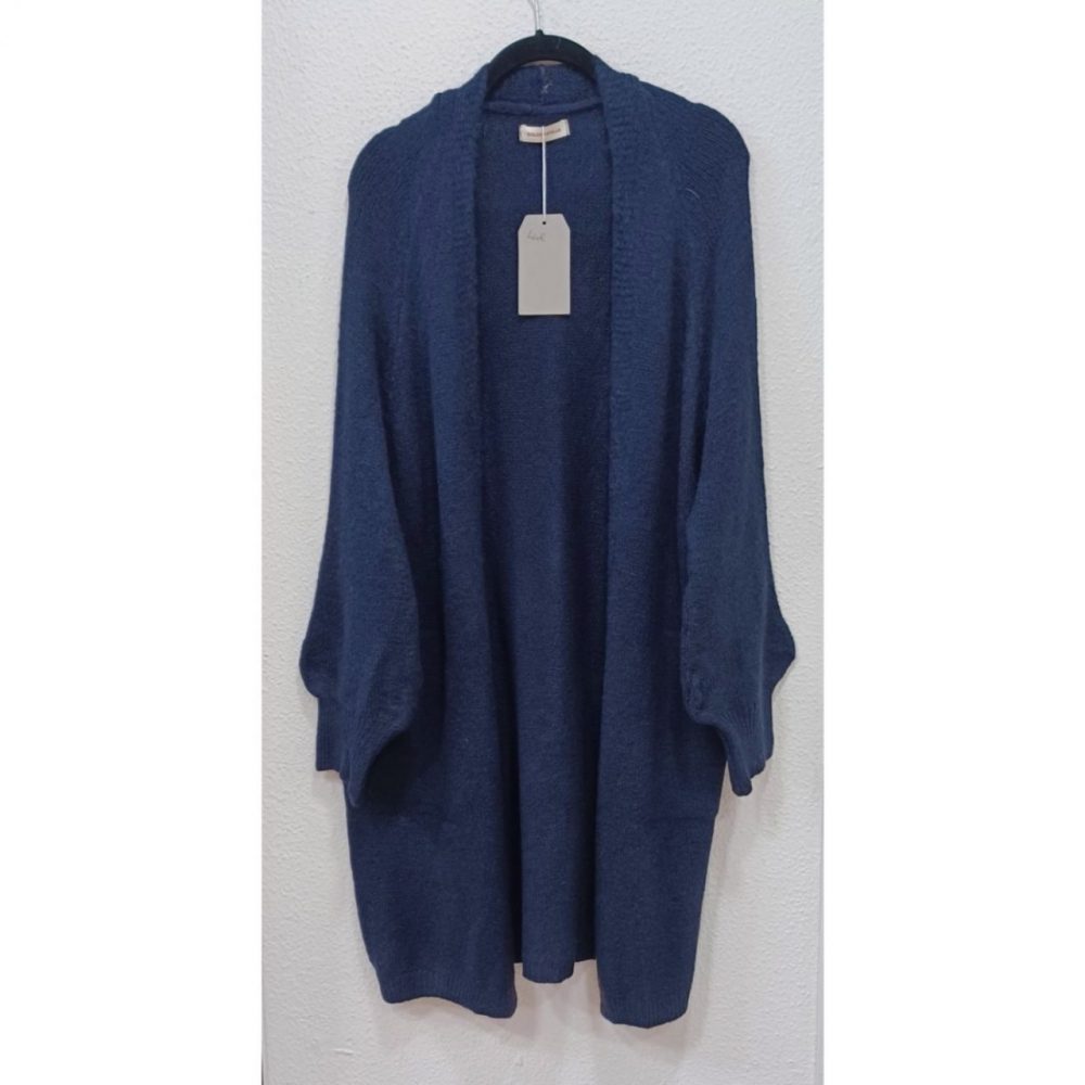 Chaqueta midi de punto, talla única, medidas: 120 cm contorno de pecho y cadera y 92 cm de largo. Composición: 52% acrílico, 22% poliester, 18% lana y 8% viscosa.