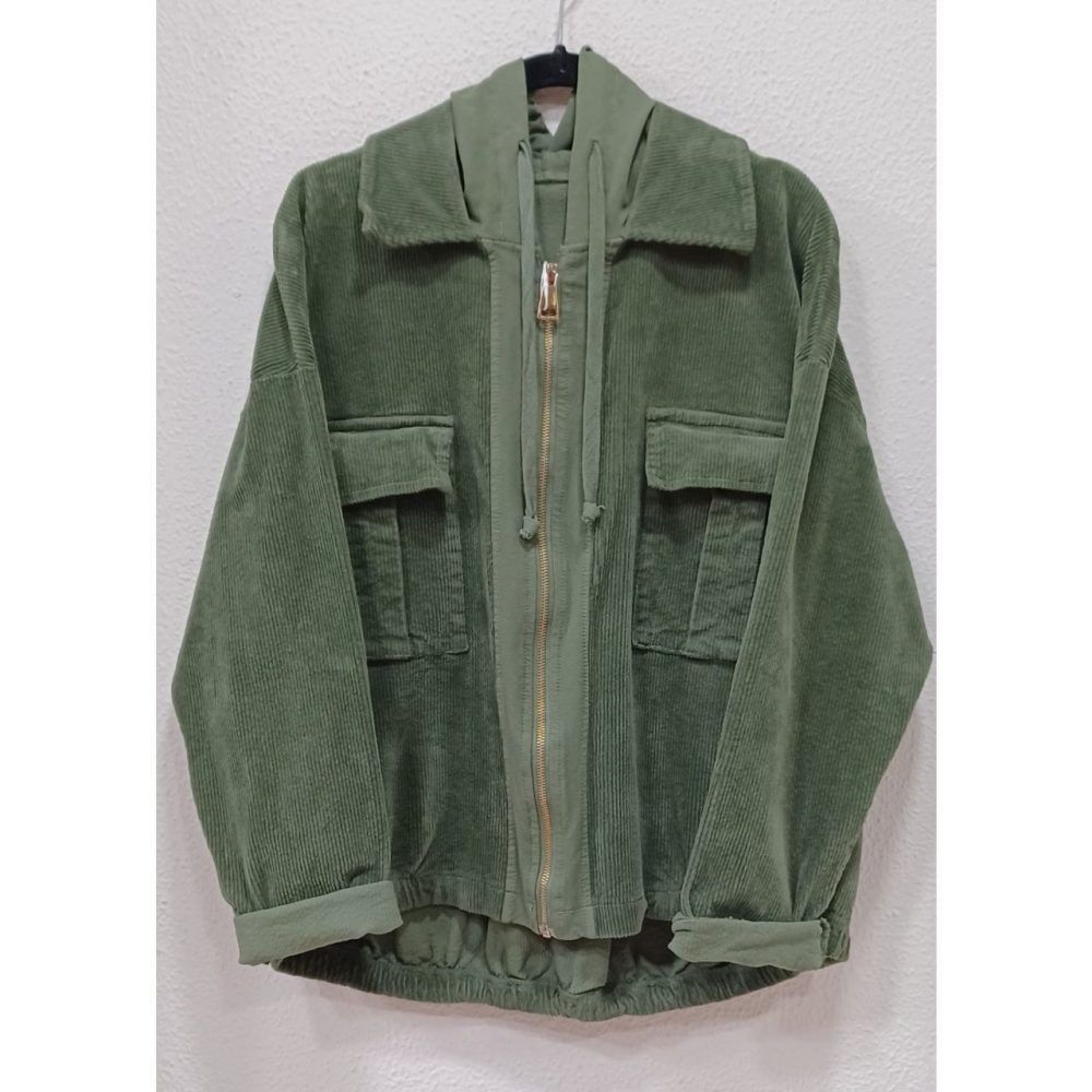 Chaqueta pana combinada con capucha de tela, algodón 97% y elastano 3%. Talla única
