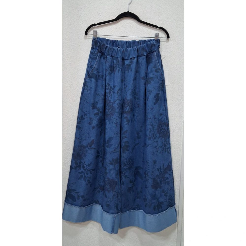 Denim flores, 73% algodón, 23% poliester y 1% spandex