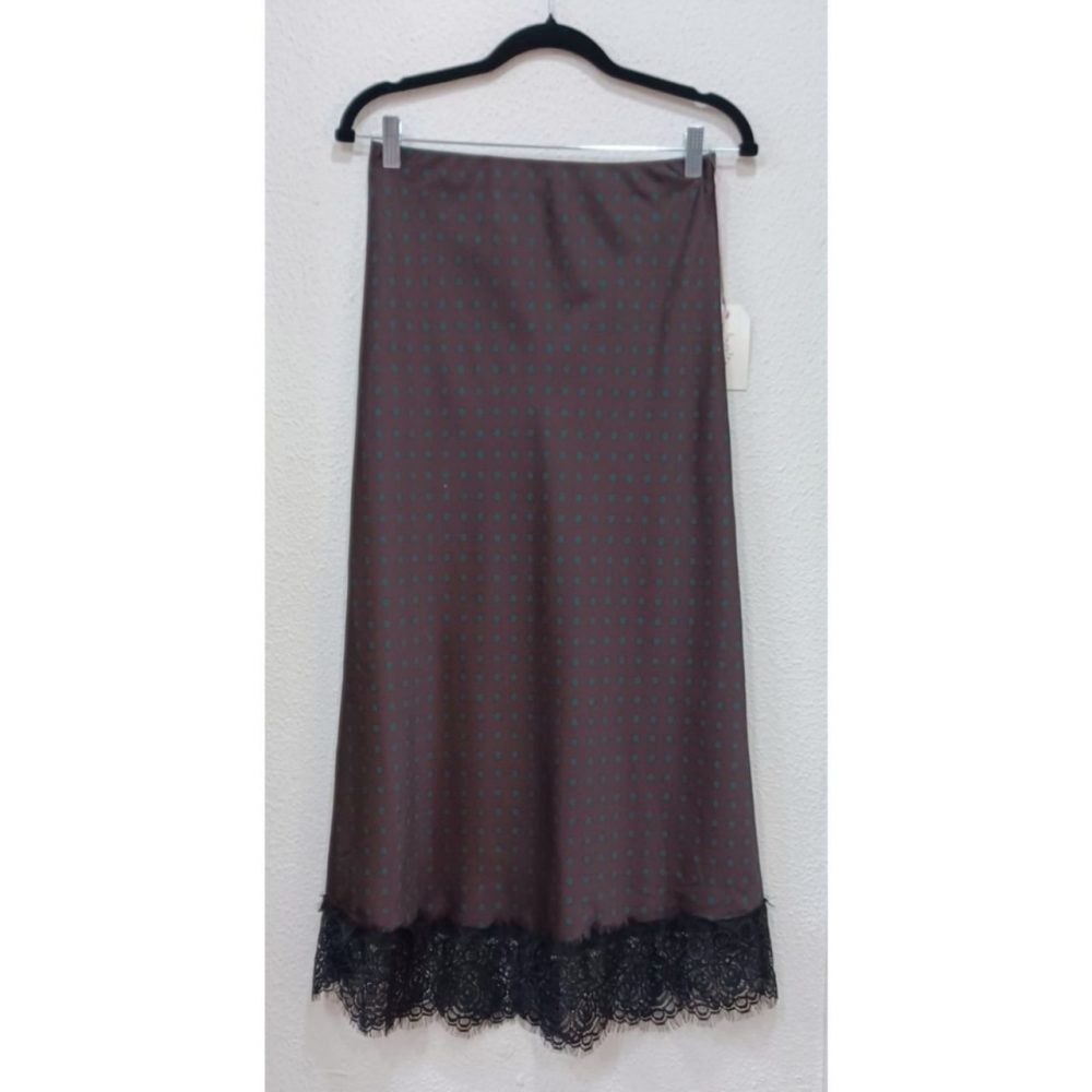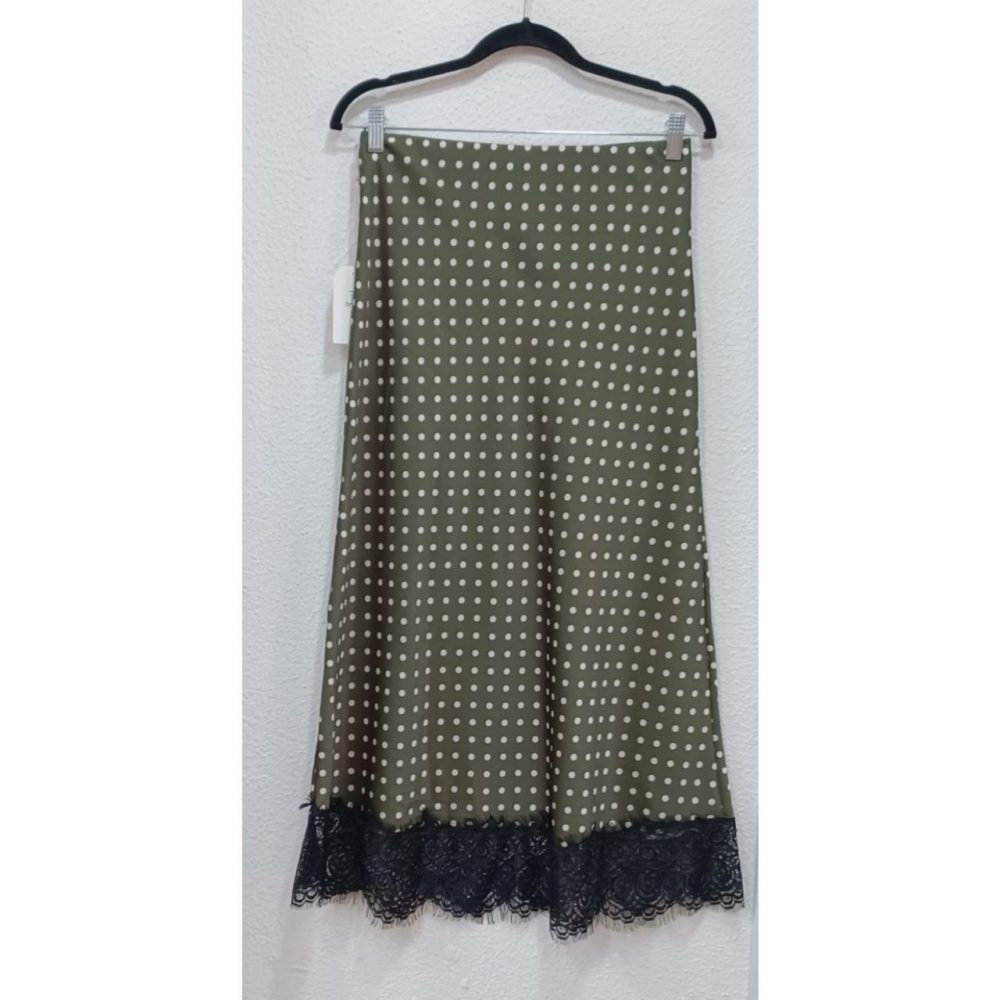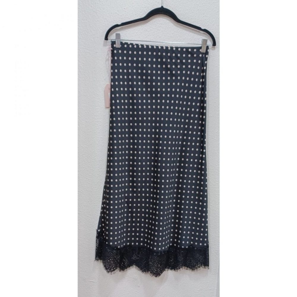 Falda lunares con puntilla en bajo, tejido satinado, goma en cintura, talla única, medidas: 100 cm contorno cadera, 90 cm largo, 70 cm contorno de goma, aconsejo talla 36, 38 y 40