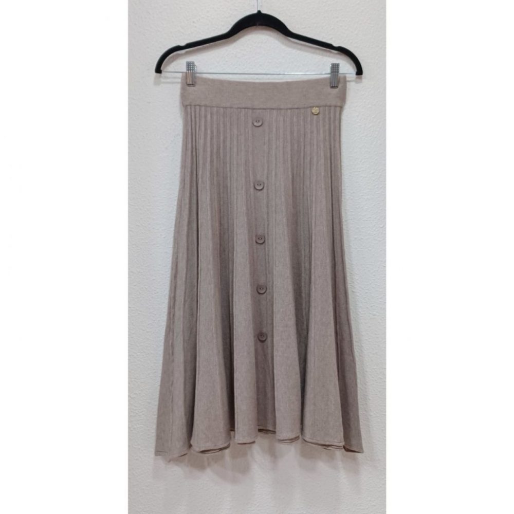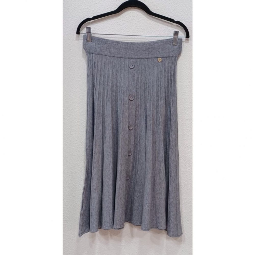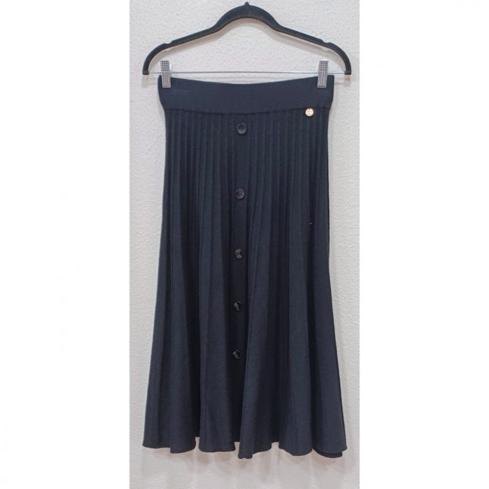 Falda midi de punto con botones, corte evasé con mucha caída, talla única, medidas: 90 cm contorno de goma y 75 cm largo