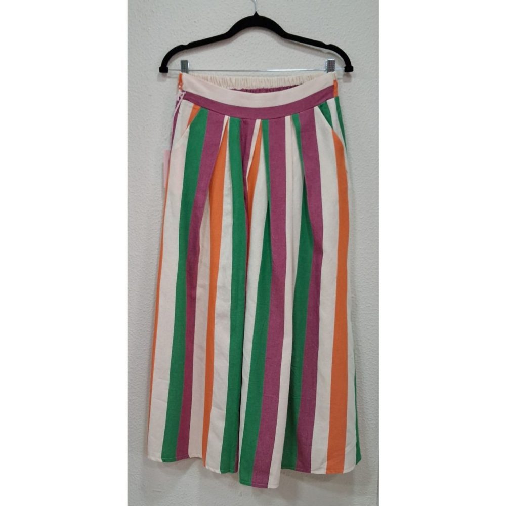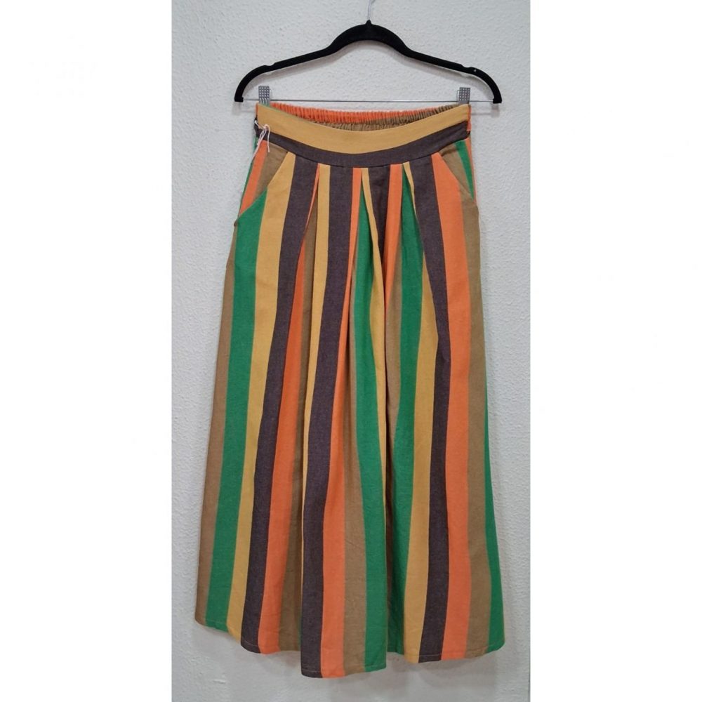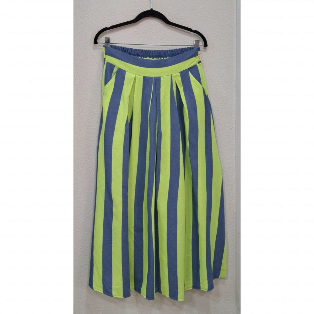Falda rústica en algodón 100%, goma en la cintura, bolsillos laterales, pinzas delanteras.