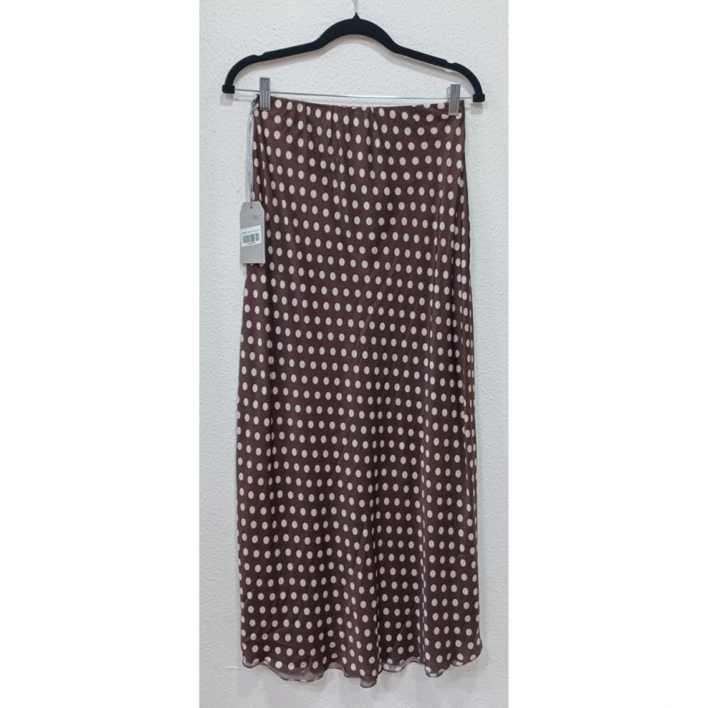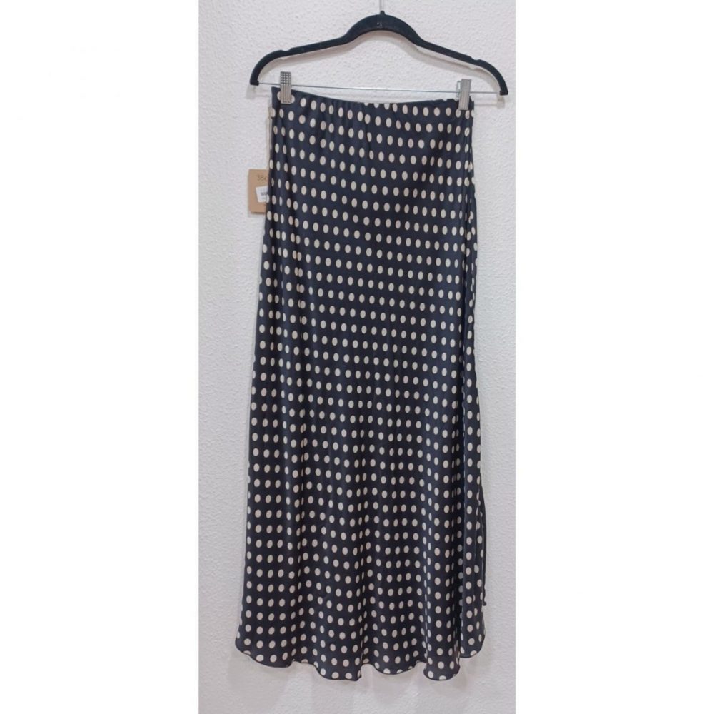 Falda satinada estampada, talla única, 70 cm contorno de goma (sin estirar), 130 cm contorno de cadera y 97 cm de largo. Aconsejo talla 36 a 44, viscosa 70% y 30% seta silk