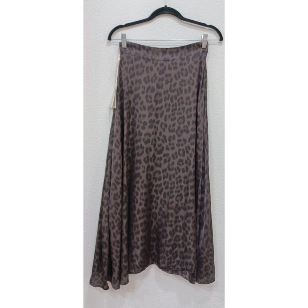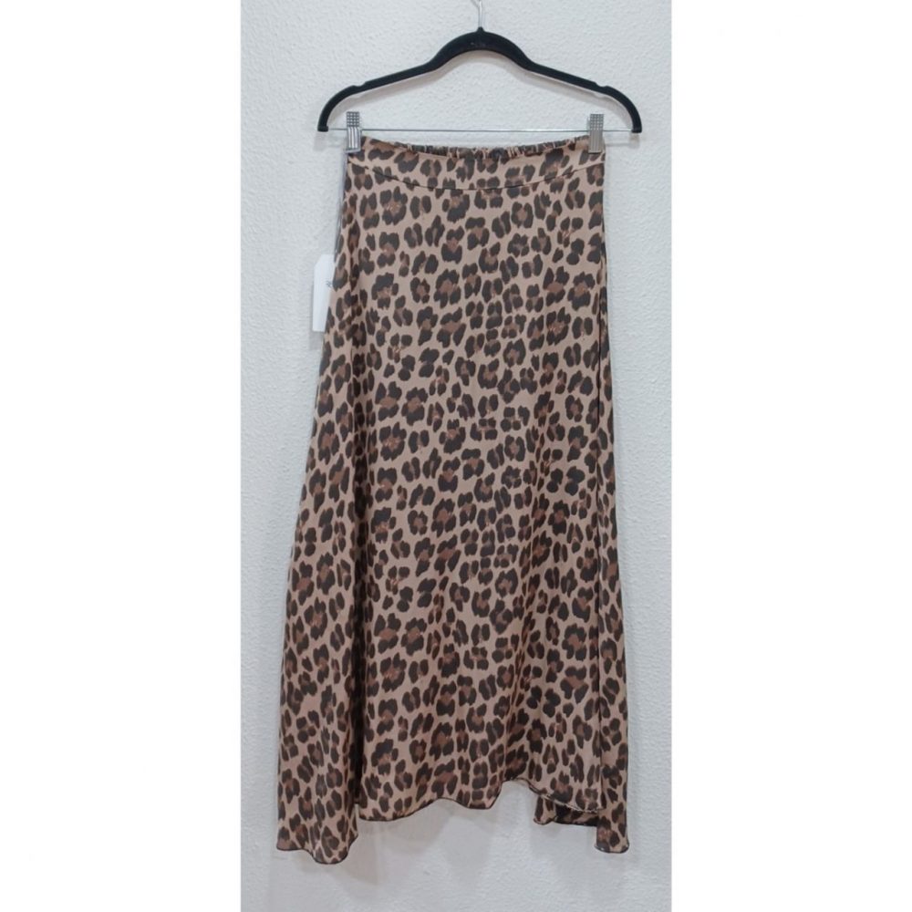 Falda satinada evasé en animal print, talla única, medidas: 140 cm contorno de cadera, 90 cm largo, 70 cm contorno de cintura (con goma por detrás), aconsejo tallaje 36 a 42