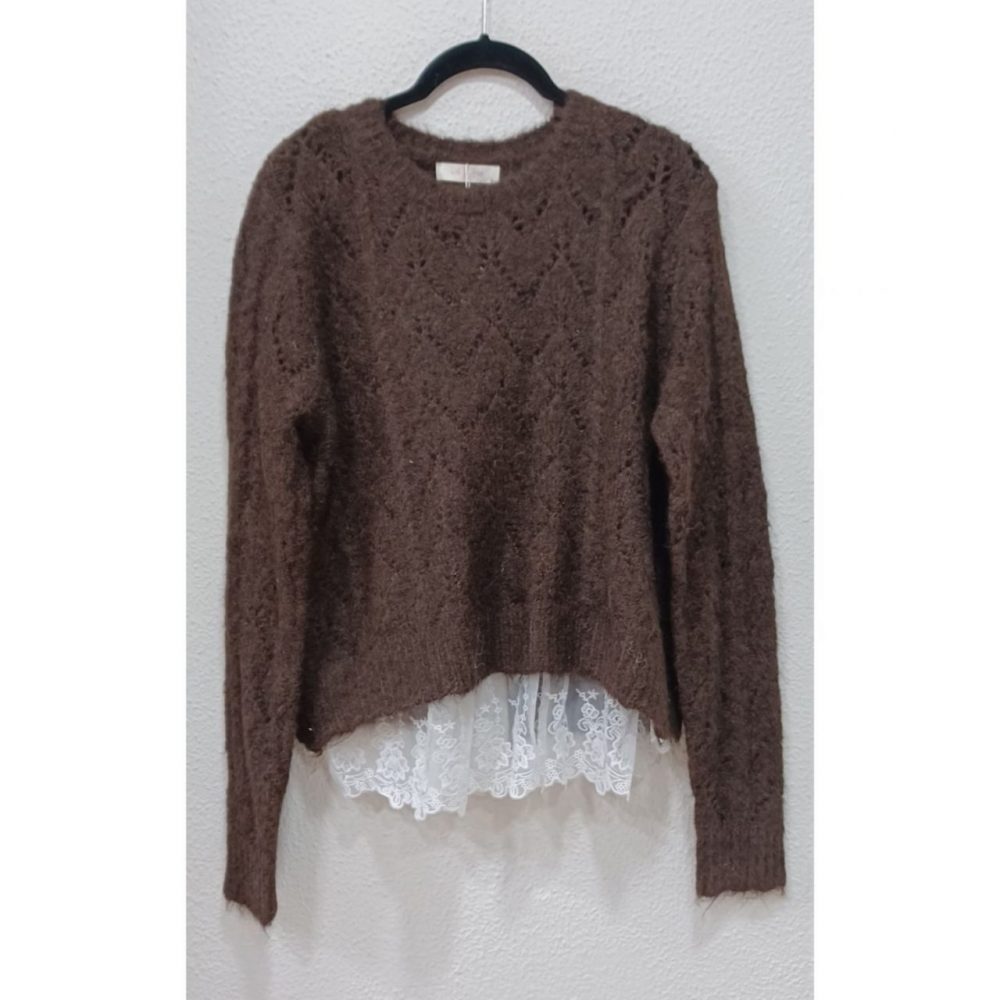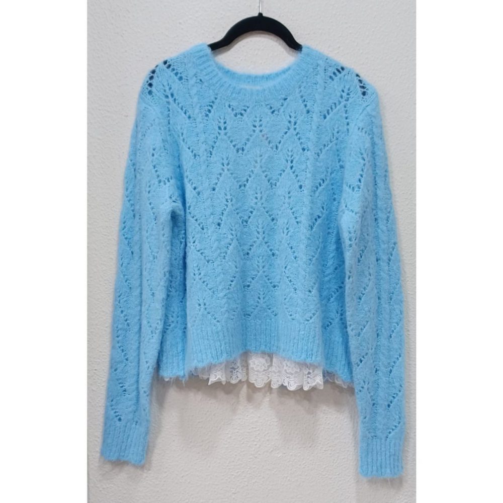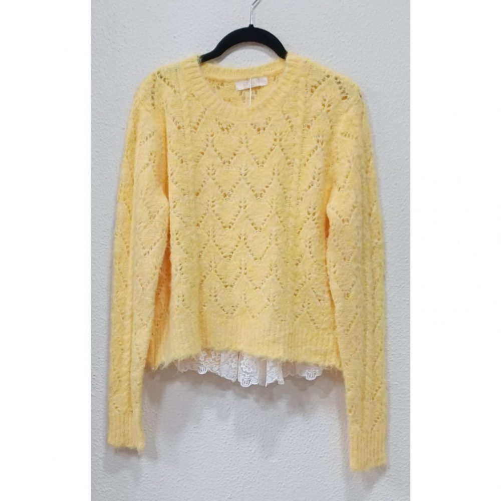 Jersey caladito con puntilla por dentro y espalda descubierta, 70% poliester, 9% lana, 21% poliamida y 1% elastano