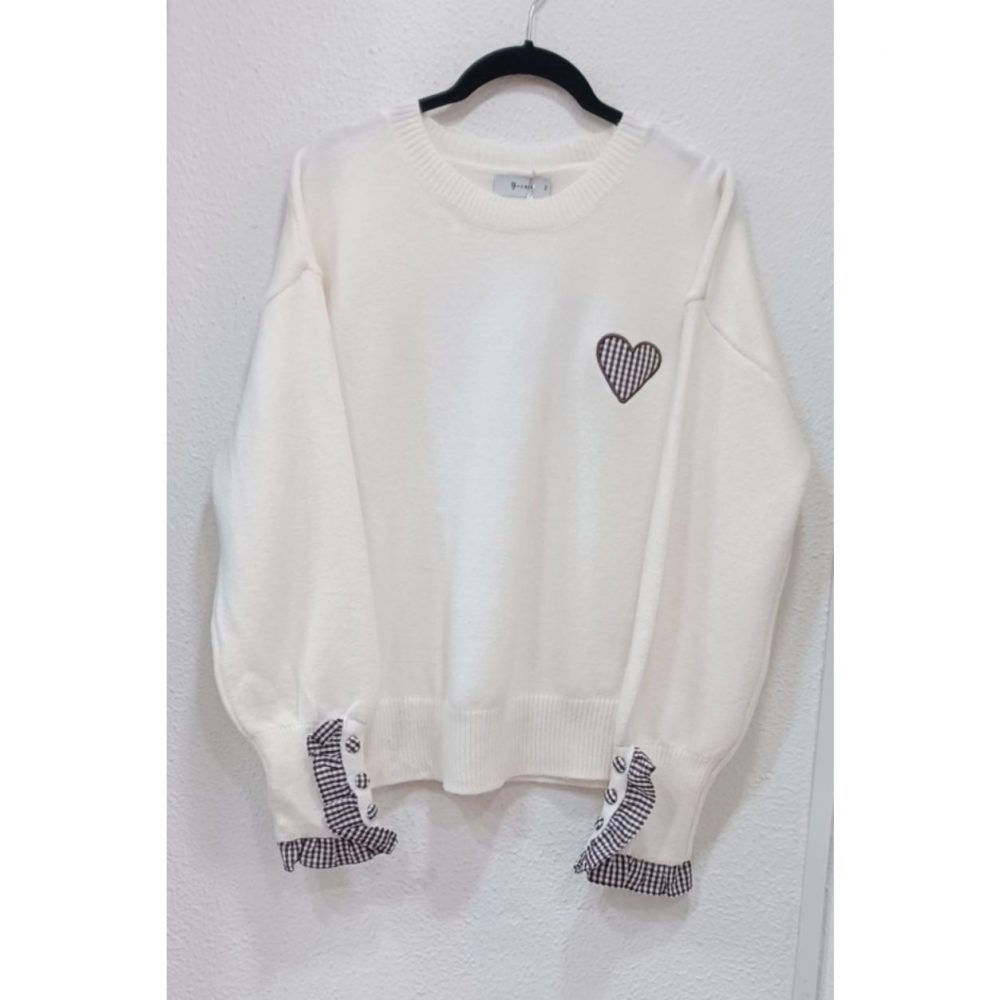 Jersey corazón, talla única, medidas: 110 pecho, 100 cadera y 62 largo. Composición: 65% viscosa y 35% poliamida