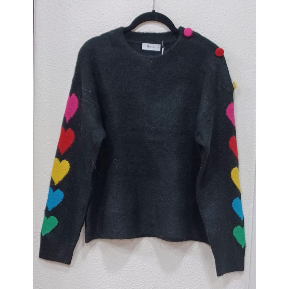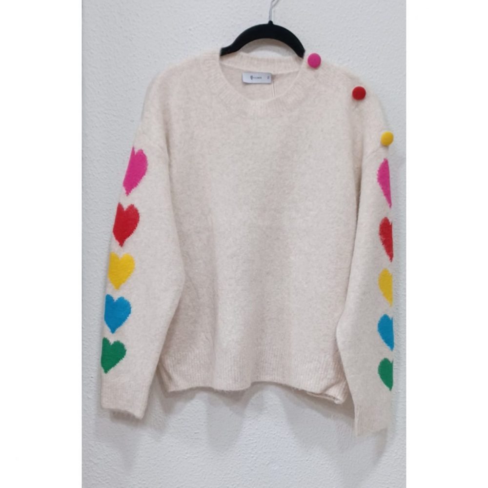 Jersey corazones colores y botones, talla única, contorno pecho y cadera 100 cm, largo 58 cm. Composición: 40% poliester, 38% lana, 20% poliamida y 2% spandex