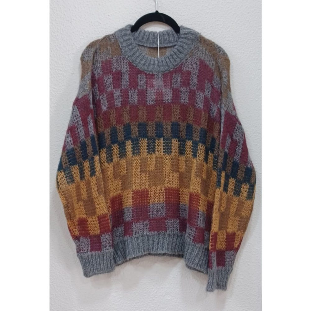 Jersey estampado en un punto finito y caladito, talla única, medidas: 110 cm contorno de pecho, 100 cm contorno de goma, 62 cm largo. Composición: 40% poliacrilico, 30% mohair y 30% poliamida