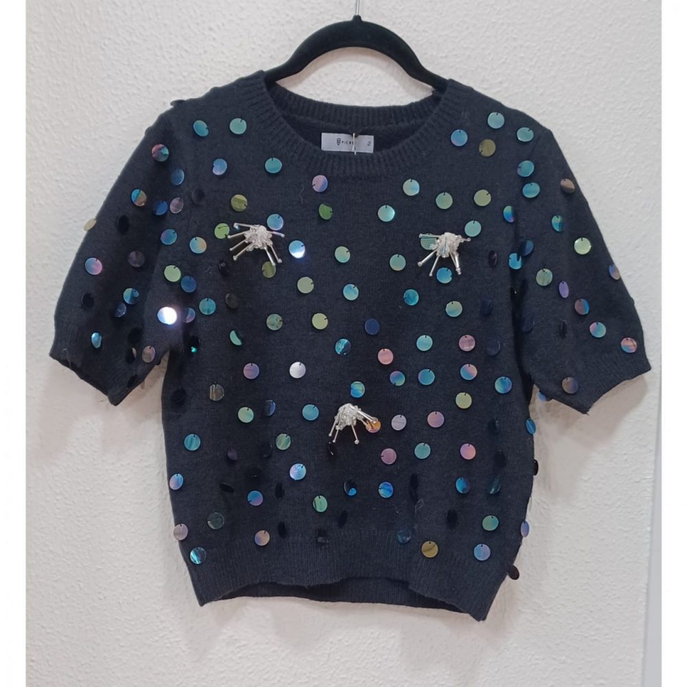Jersey fantasía, talla única, medidas: 90 contorno de pecho, 80 contorno de cadera y 50 largo. Composición: 50% acrílico, 25% viscosa, 20% poliamida y 5% elastano