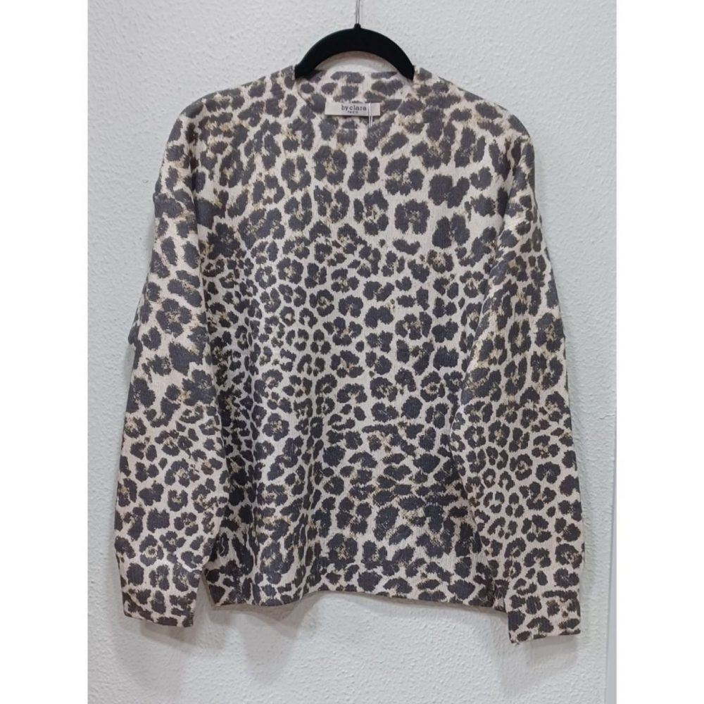 Jersey leopardo en punto fino tupido, 50% poliamida, 45% viscosa y 5% lurex