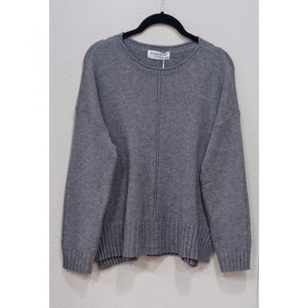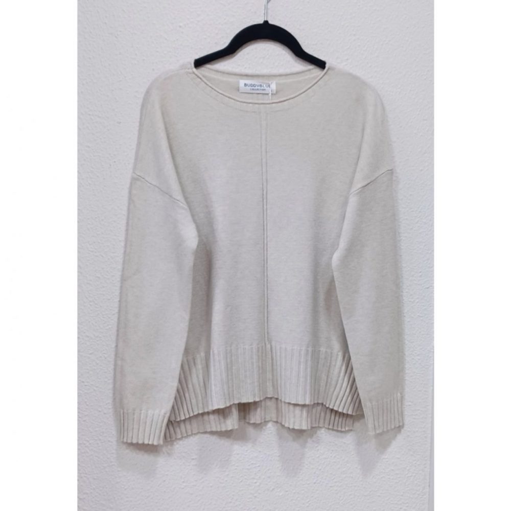 Jersey liso con aberturas laterales, se puede combinar con el pantalón de punto en los mismos colores, tallaje S, M y L. Marca buddyblue, composición: 50% viscosa, 30% poliamida y 20% nylon
