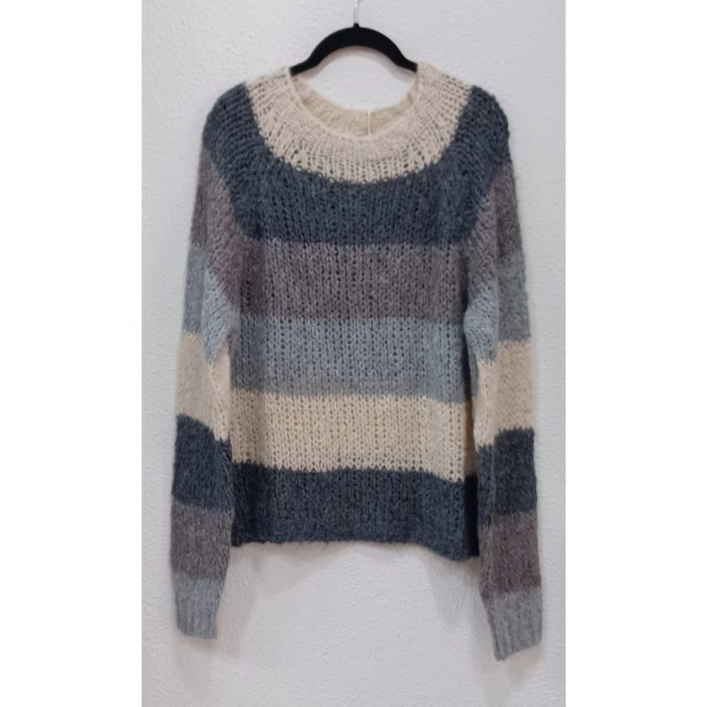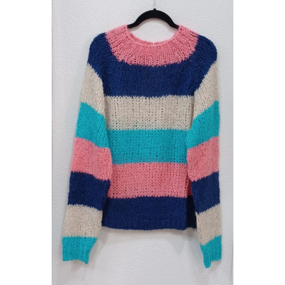 Jersey raya ancha, punto abierto, talla única, medidas: 110 cm contorno de pecho y cadera y 64 cm largo, composición: 60% acrílico, 20% mohair, 10% lana y 10% poliamida