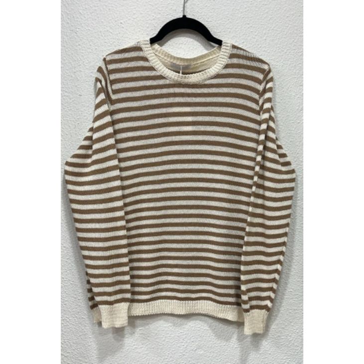 Jersey rayitas, talla única, medidas: 100 cm contorno de pecho y cadera y 62 cm de largo. Composición: 50% algodón y 50% acrílico.
