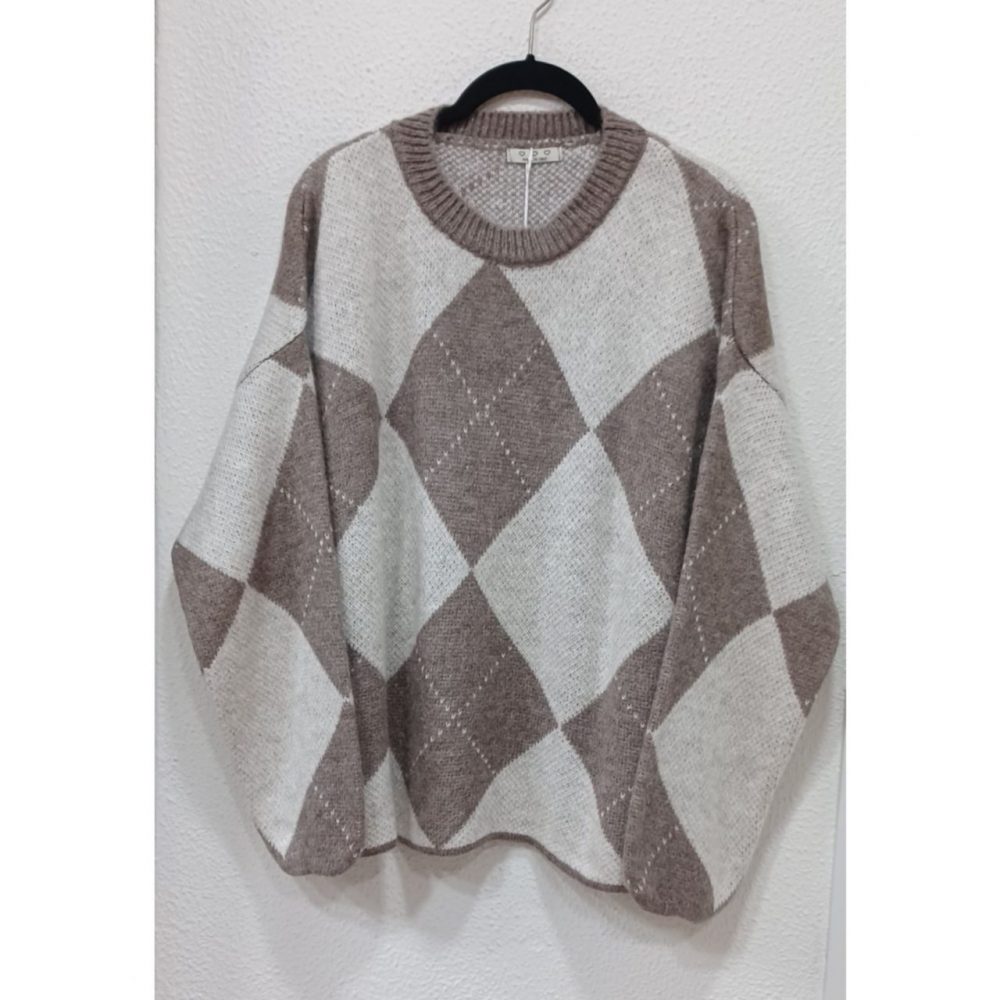 Jersey rombos, corte cuadrado, 56% acrílico, 28% poliamida, 8% lana y 8% viscosa