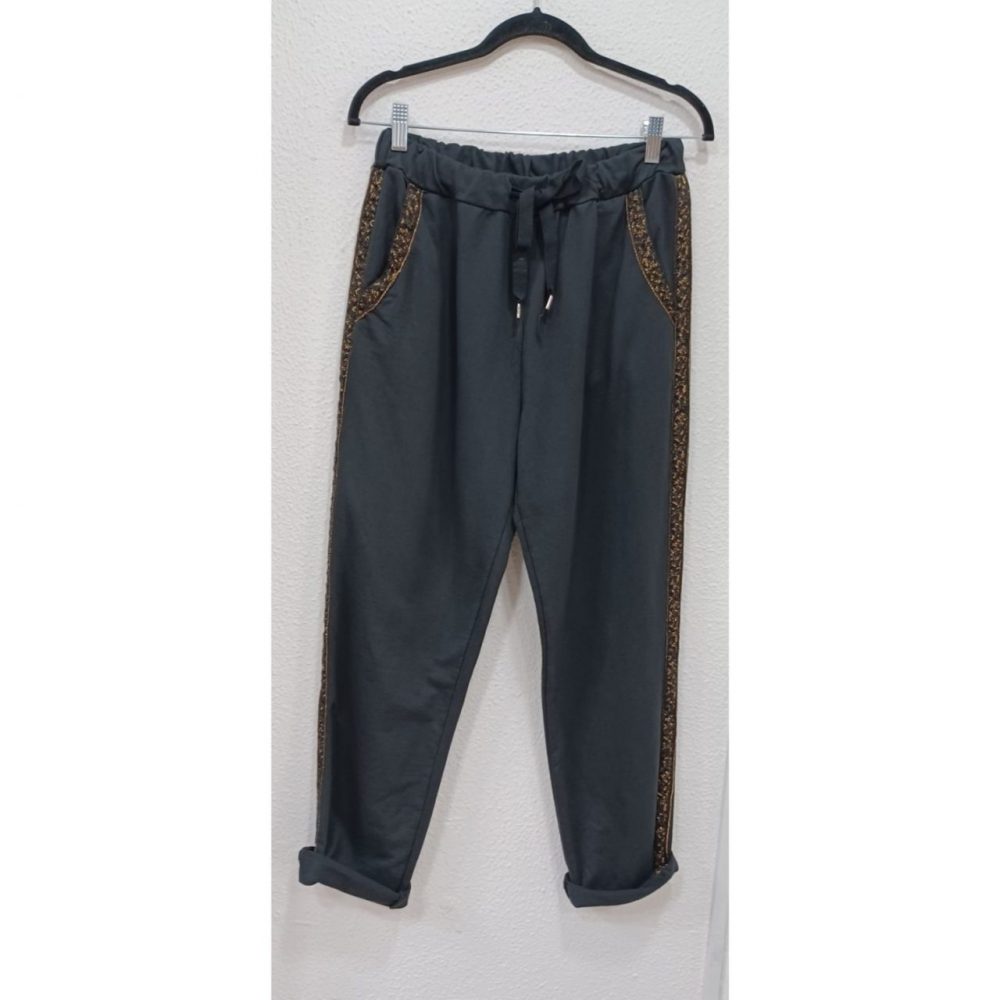 Jogger detalle dorado, talla única, medidas: 100 cm contorno de cadera, aconsejo talla 36 a 44, 95% algodón y 5% elastano.