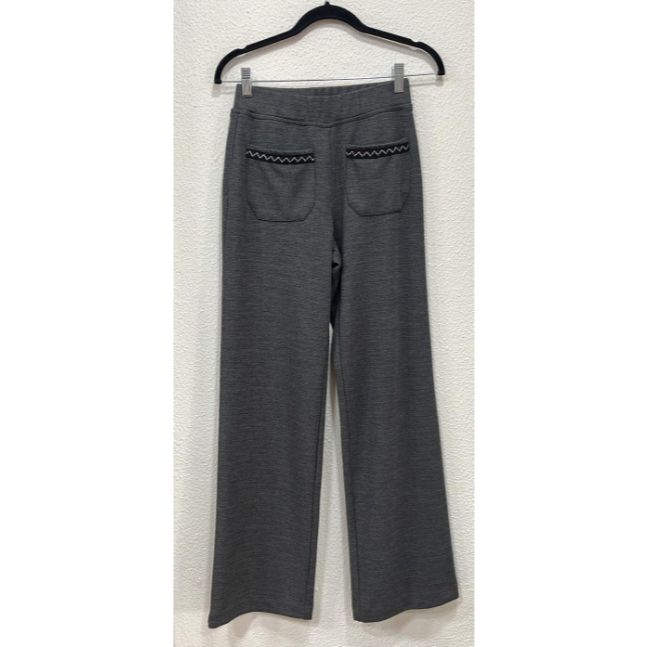 Pantalón ancho en punto liso, en gris, muy elástico, con goma en el interior de la cintura y apliques en plata en los bolsillos delanteros, marca Jarman, tallaje 36 a 50