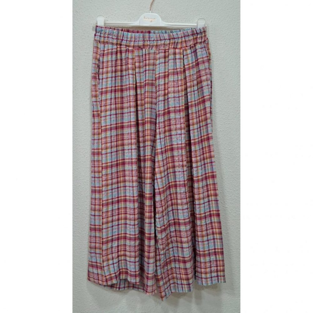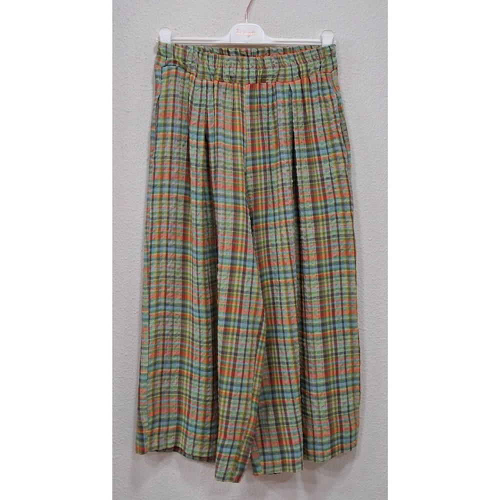 Pantalón cuadros (Wiya) en tejido arrugado, goma en la cintura, composición: 47% viscosa, 43% algodón y 10% poliester
