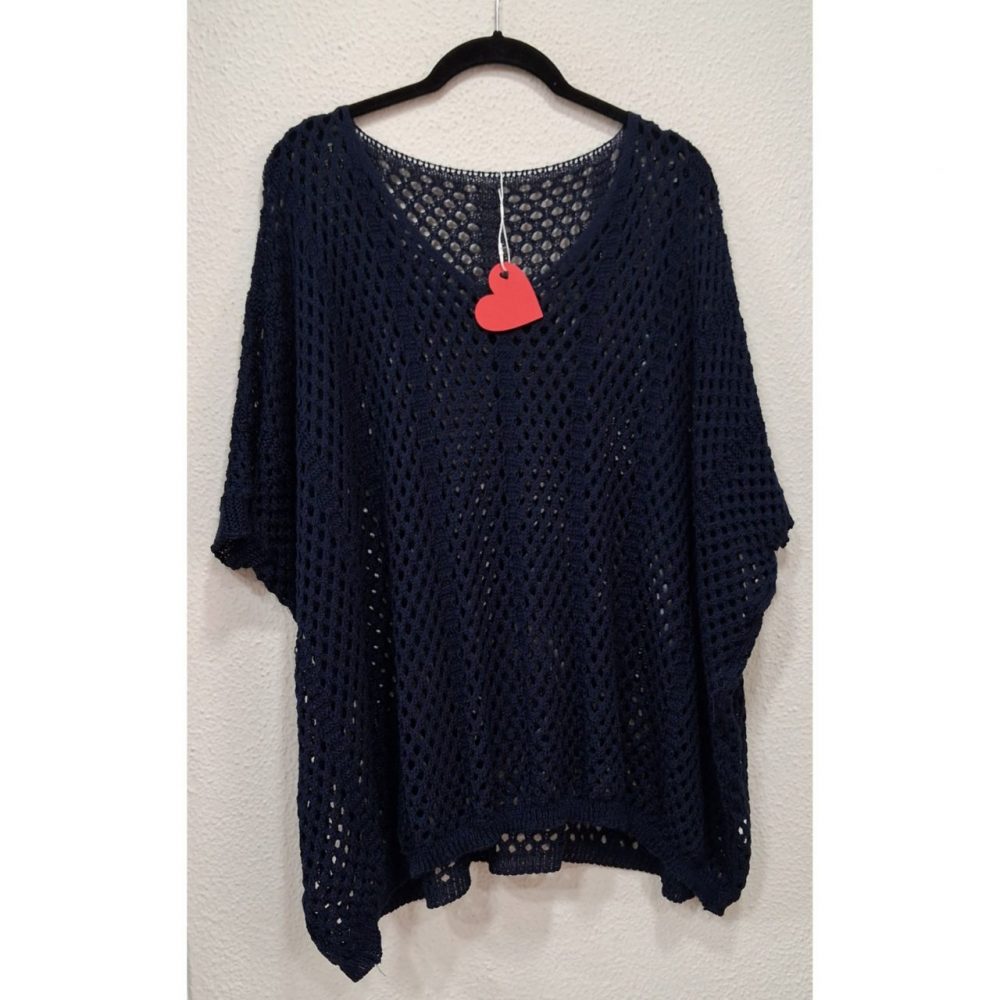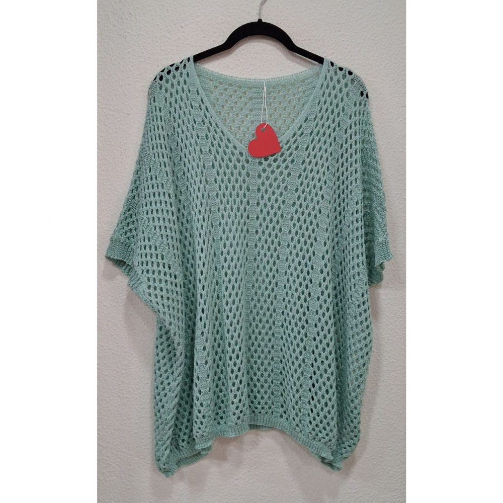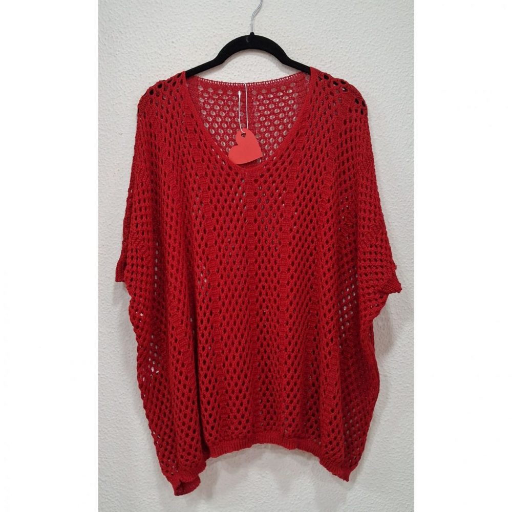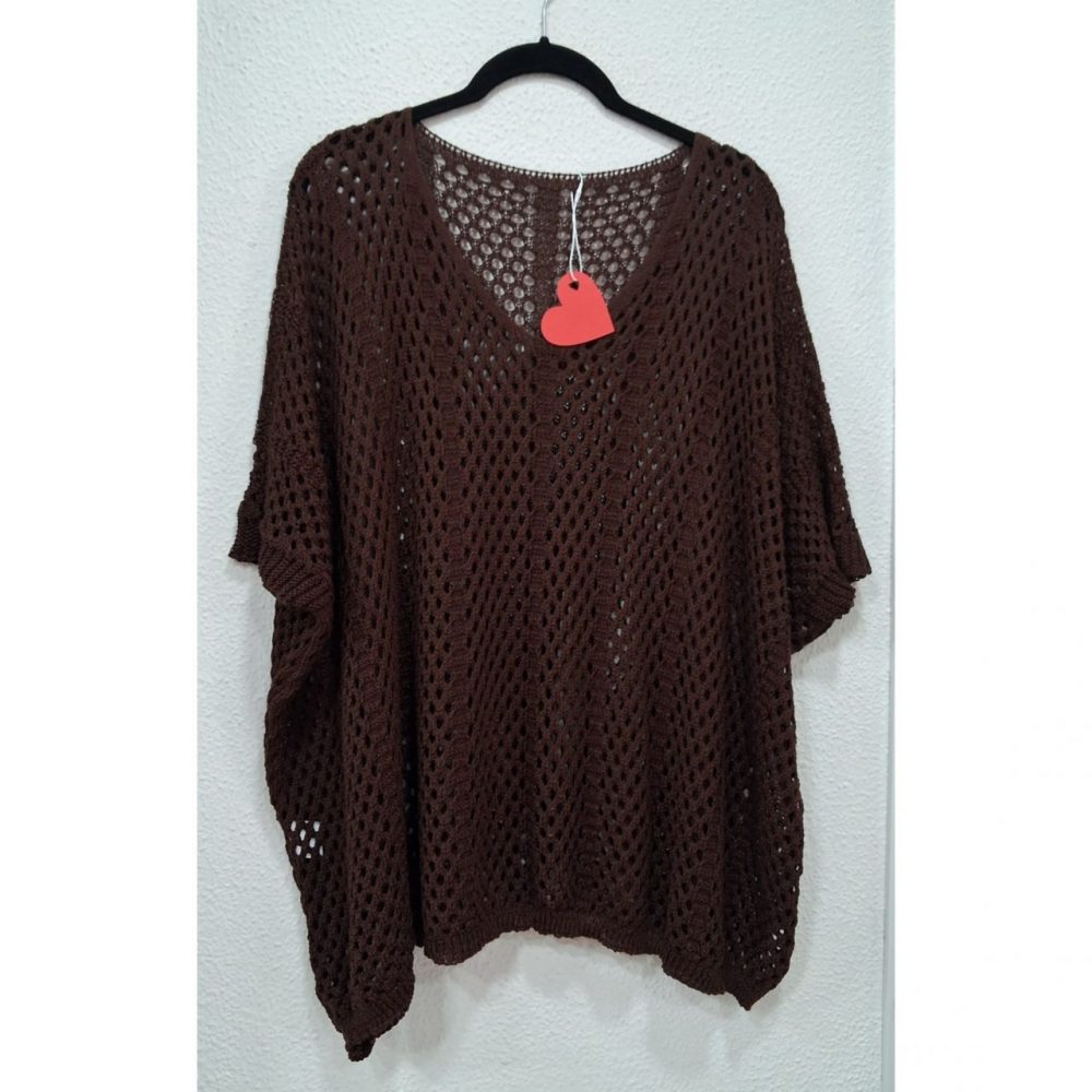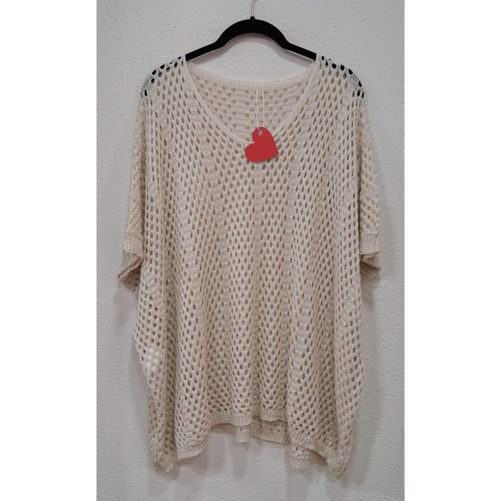 Rejilla oversize, ligeramente más larga por los laterales, composición: 88% acrílico y 12% nylon