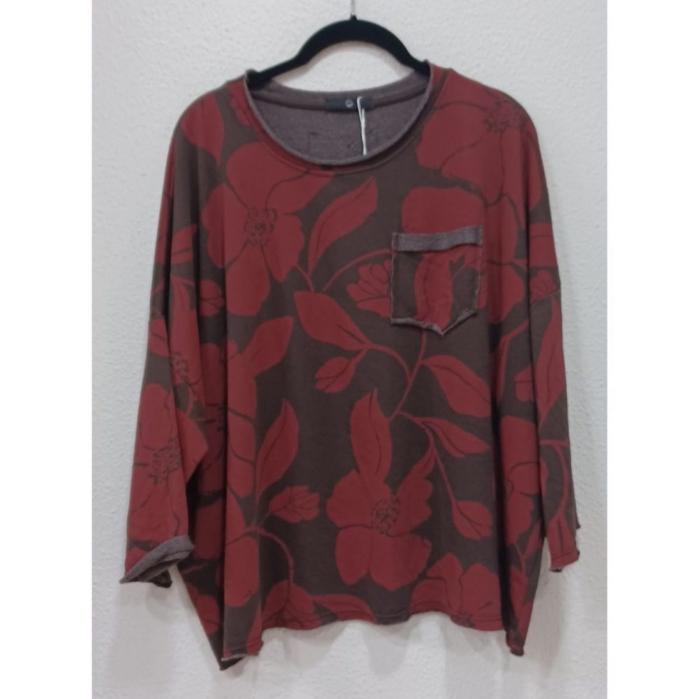 Sudadera flores, talla única, medidas: 152 cm contorno de pecho y cadera y 63 cm de largo. 70% algodón y 30% poliester