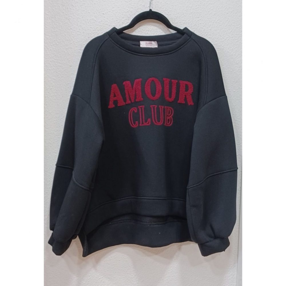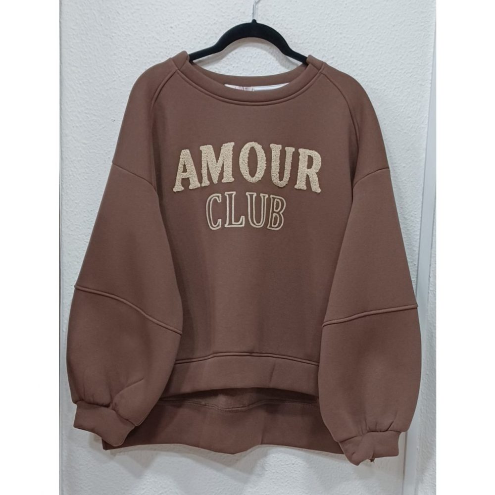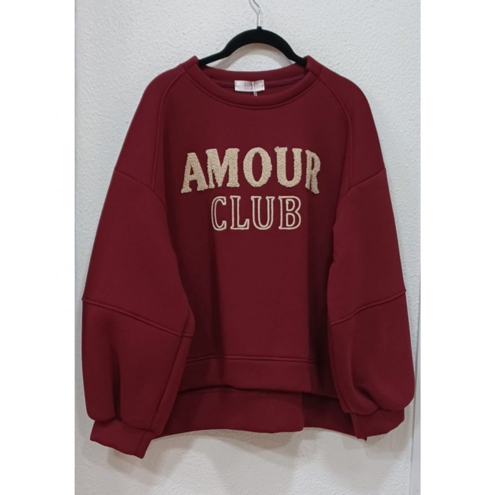 Sudadera letras bordadas, relleno cálido, talla única, aberturas laterales, ligeramente más larga por detrás. Medidas: contorno 140 cm y largo 59x67