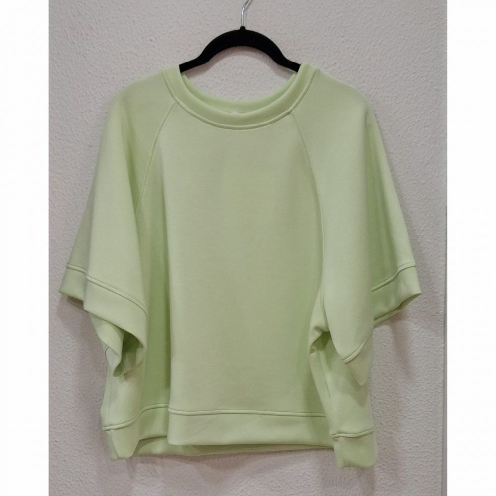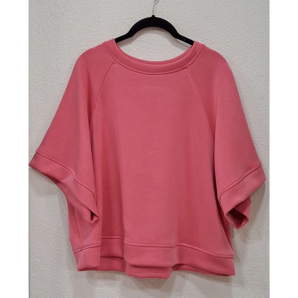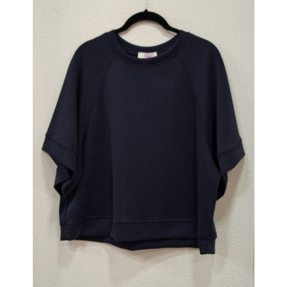 Sudadera manga corta, tejido soft, corte cuadrado, ligeramente más larga por detrás, 45% poliester, 45% viscosa y 10% elastano