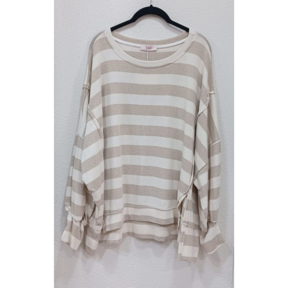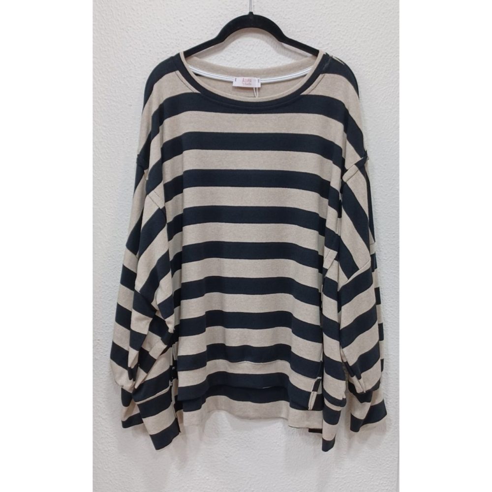 Sudadera oversize, talla única, medidas: 178 cm contorno de pecho y cadera, 66×70 cm de largo. Corte cuadrado con aberturas laterales, 80% algodón, 15% poliester y 5% elastano.