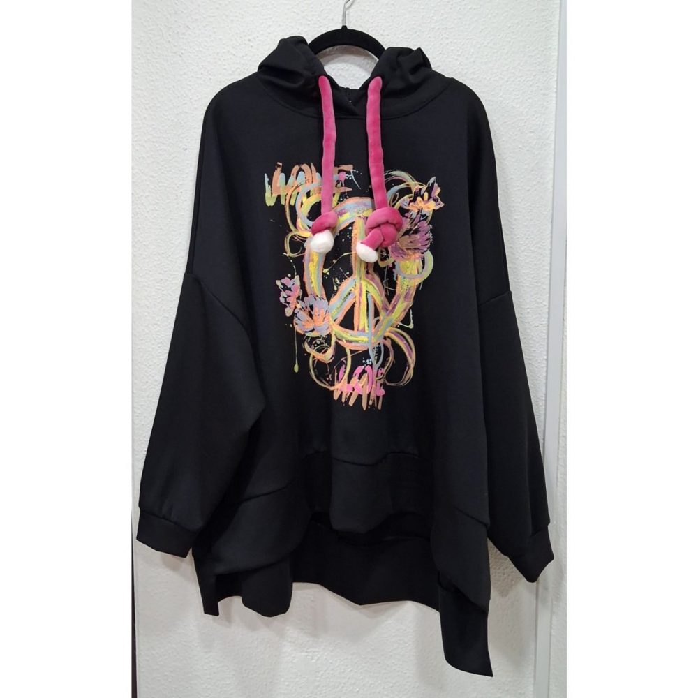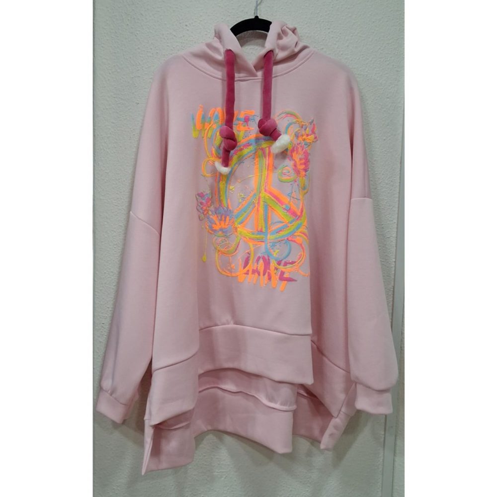 Sudadera peace, corte oversize, más larga por detrás, 80% viscosa, 15% poliester y 5% elastano