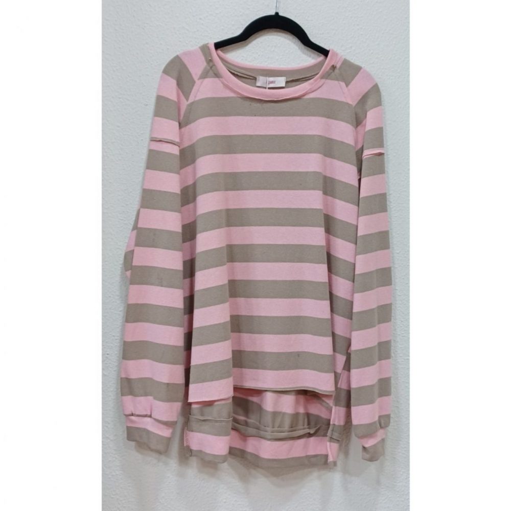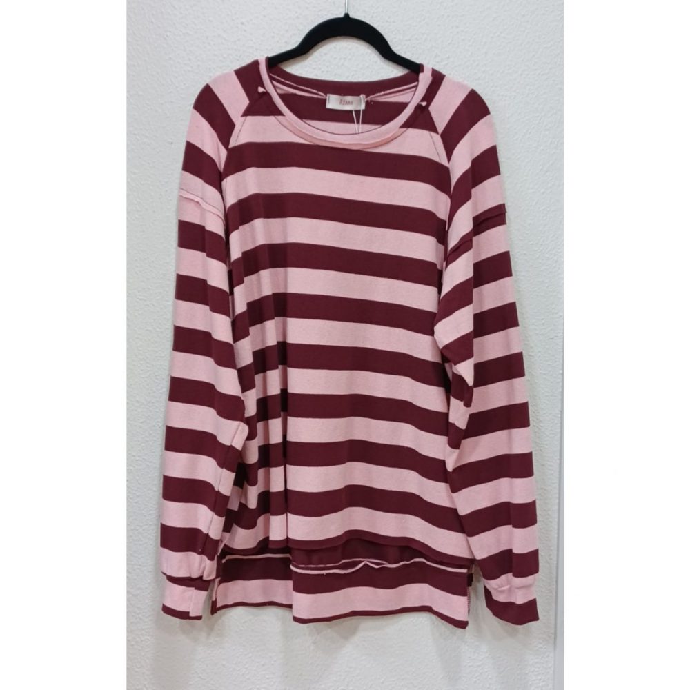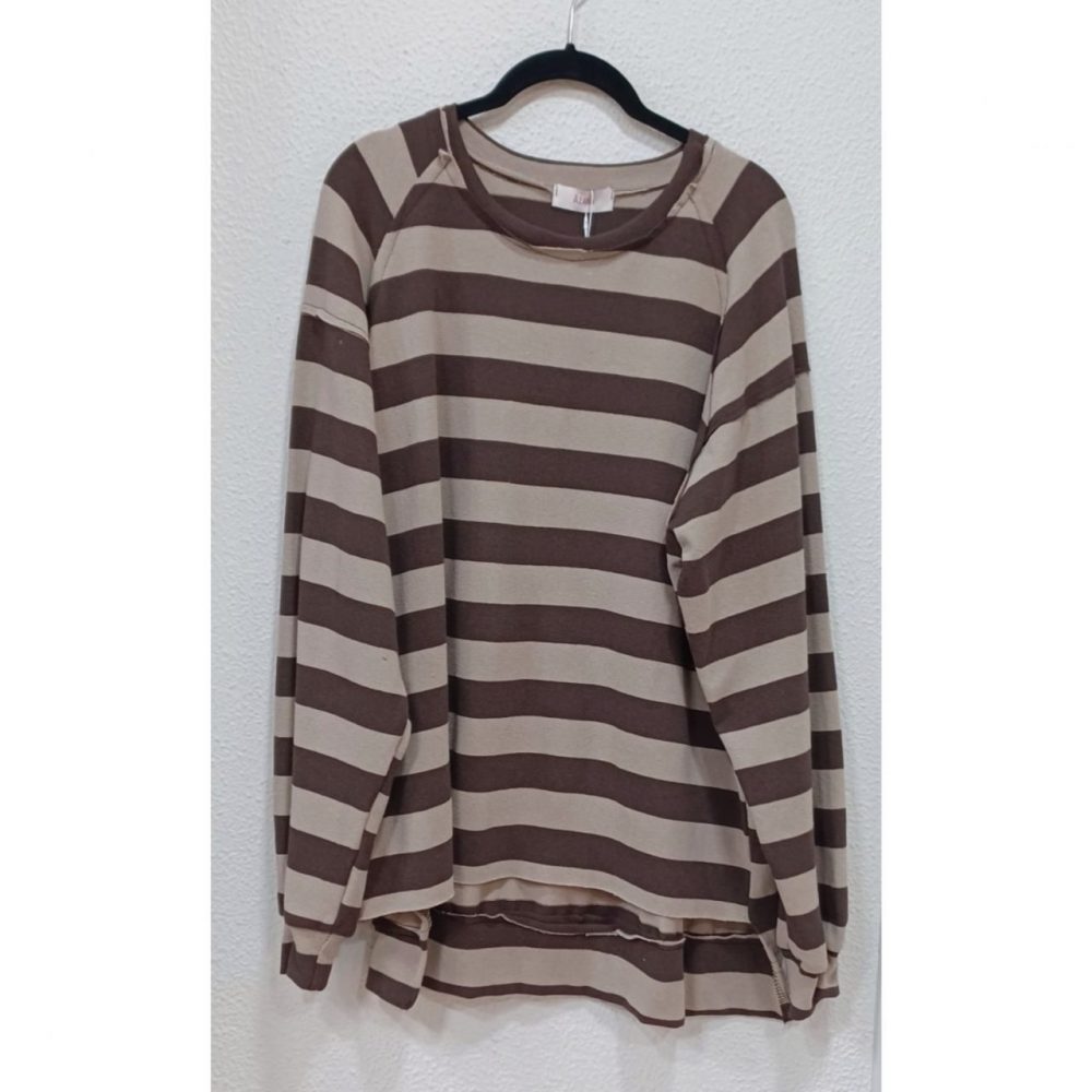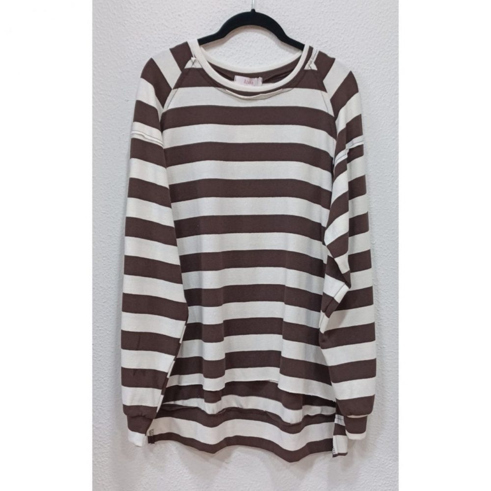 Sudadera rayas, talla única, más larga por detrás, medidas: 120 pecho y cadera y 67x77 largo. Composición: 80% algodón, 15% poliester y 5% elastano