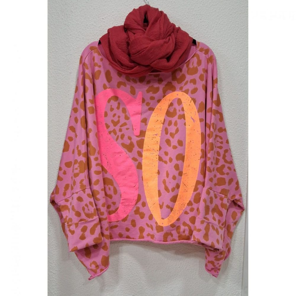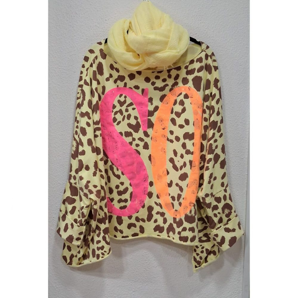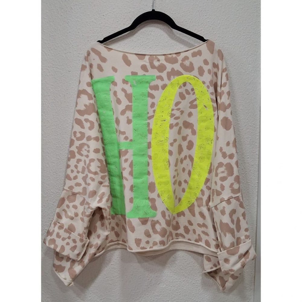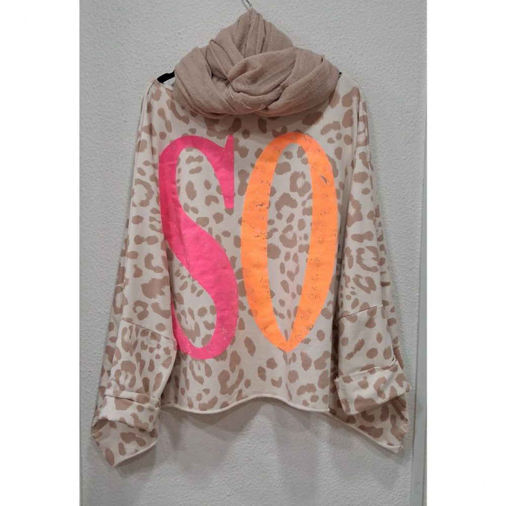 Sudadera SOHO en estampado animal print, corte oversize, 95% algodón y 5% elastano